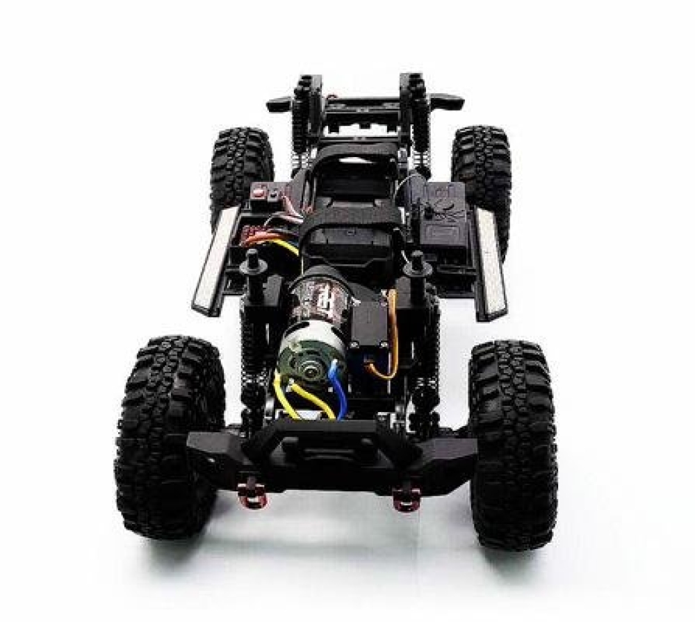 Радиоуправление помехозащищенное 2.4 ГГц, подвеска энергоемкая многорычажная. Мотор коллекторный, профессиональный - 17T RC550. Рама жесткая, сделана из металлического сплава, тяги из анодированного алюминия, кардан и крестовины из нейлонового композита. Постоянный полный карданный привод 4WD с дифференциалами из металла.