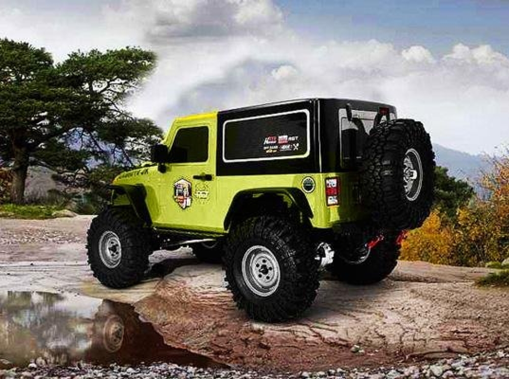 Электронный регулятор скорости с влагозащитой, сервопривод рулевого управления с защитой от воды и песка, трансмиссия защищена от попадания песка и камней. Вездеходные колеса с противоскользящим покрытием позволяют внедорожнику подниматься по склонам и преодолевать каменистые поверхности. Управление - пропорциональное. Корпус зеленого цвета.