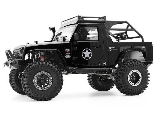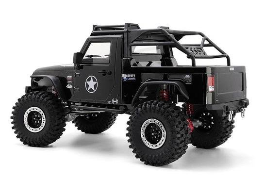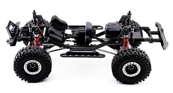 Краулер в масштабе 1:10. Влаго- и грязезащищен, жесткая металлическая рама, серво с защитой от попадания воды и песка. Скорость до 25 км/ч. Подходит для эксплуатации в сложных условиях. Кузов чёрного цвета.