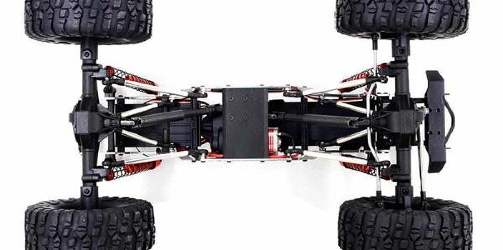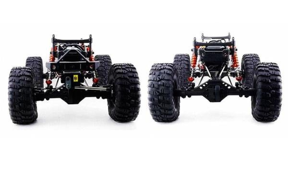 Радиоуправление помехозащищенное 2.4 ГГц, подвеска энергоемкая многорычажная. Мотор коллекторный - 17T RC550. Рама жесткая, сделана из металлического сплава, тяги из анодированного алюминия, кардан и крестовины из нейлонового композита. Постоянный полный карданный привод 4WD с дифференциалами из металла.