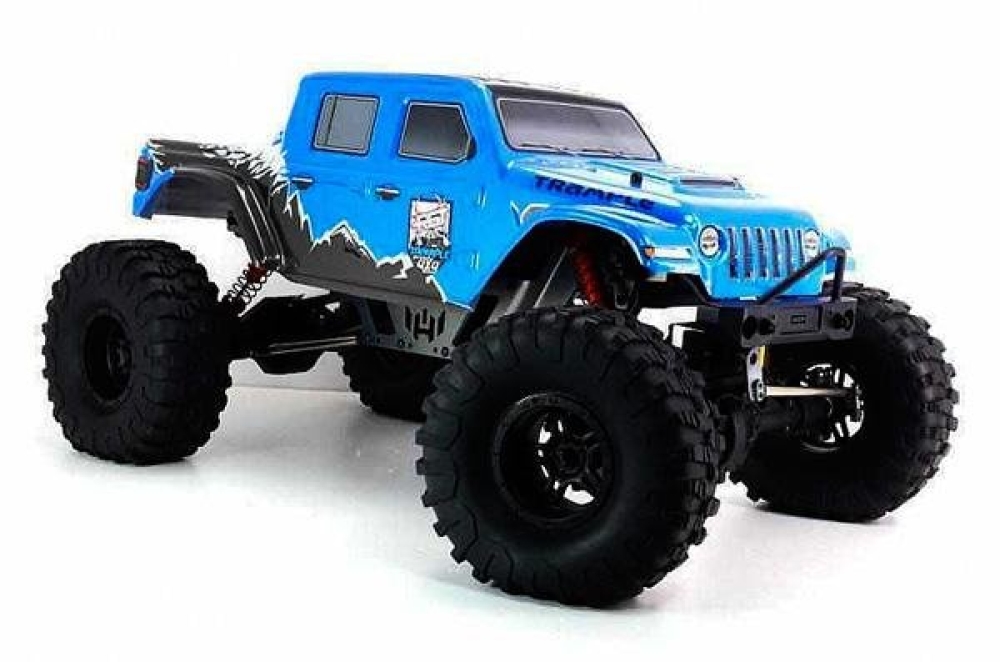 Электронный регулятор скорости с влагозащитой, сервопривод рулевого управления с защитой от воды и песка, трансмиссия защищена от попадания песка и камней. Вездеходные колеса с противоскользящим покрытием позволяют внедорожнику подниматься по склонам и преодолевать каменистые поверхности. Управление - пропорциональное. Корпус синего цвета, с цветными декалями.