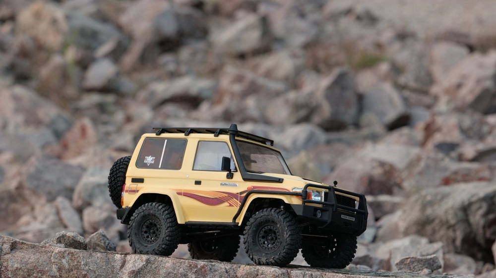 - Реалистичный дизайн и деталировка: Кузов повторяет классические линии внедорожника Toyota Land Cruiser 71. В стандартную комплектацию входят интерьер, запасное колесо, багажник на крыше, зеркала, ручки и светодиодная подсветка фар.