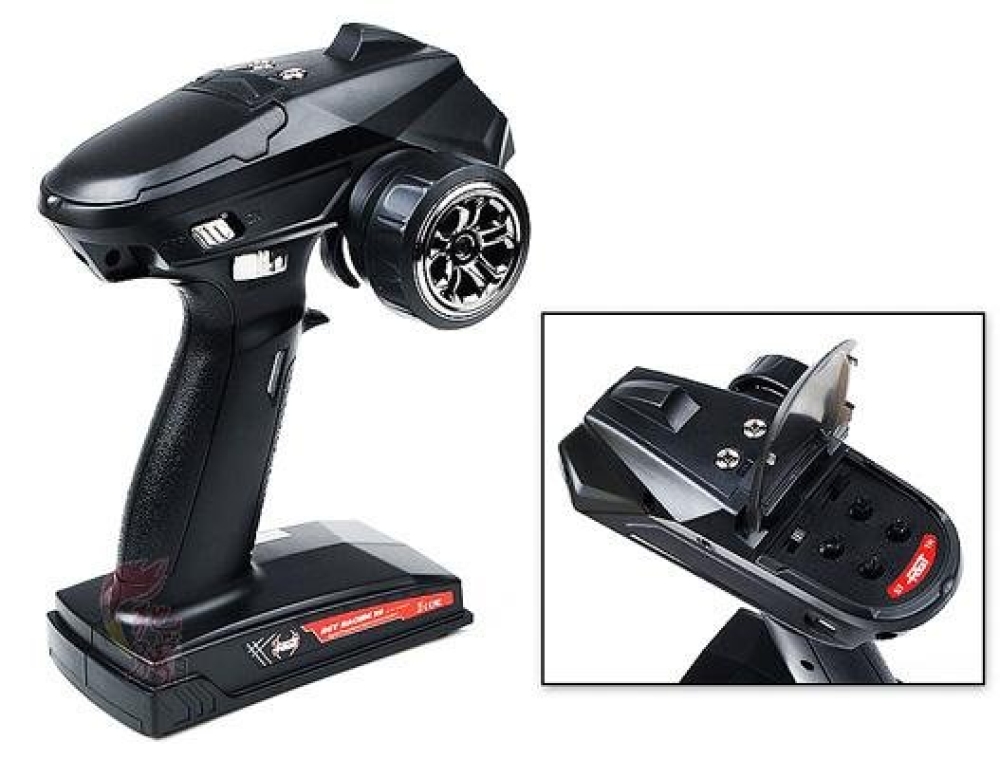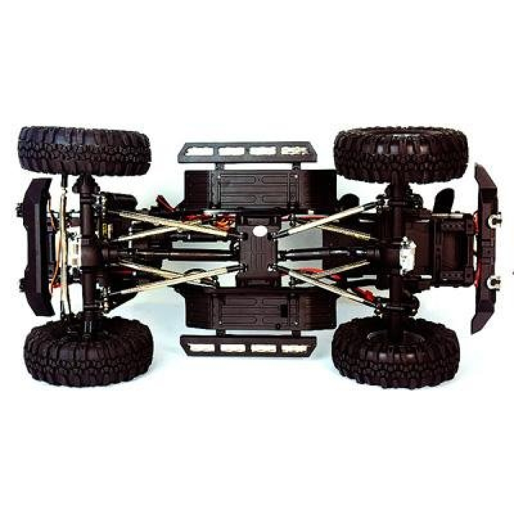 Радиоуправление помехозащищенное 2.4 ГГц, подвеска энергоемкая многорычажная. Мотор коллекторный, профессиональный - 17T RC550. Рама жесткая, сделана из металлического сплава, тяги из анодированного алюминия, кардан и крестовины из нейлонового композита. Постоянный полный карданный привод 4WD с дифференциалами из металла.