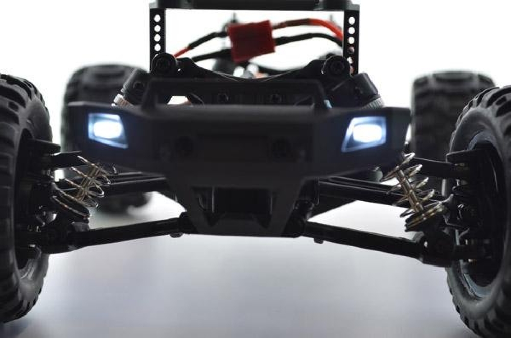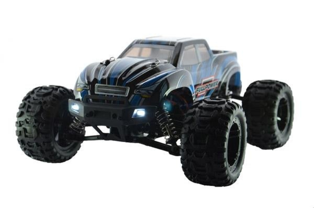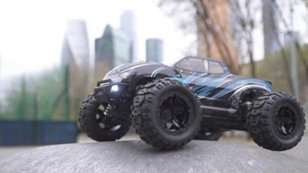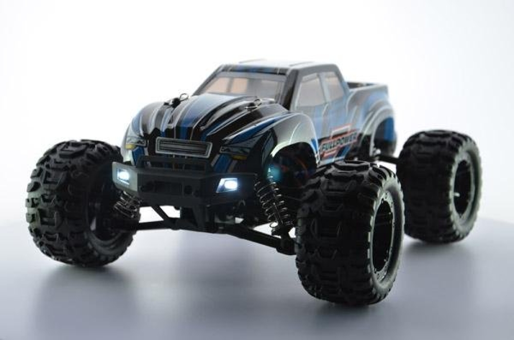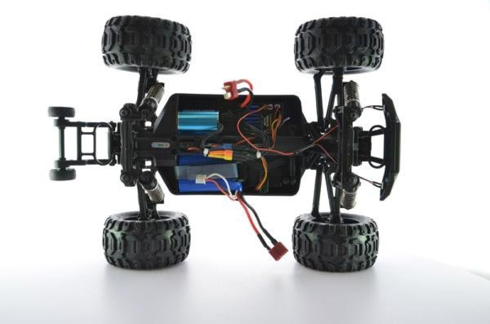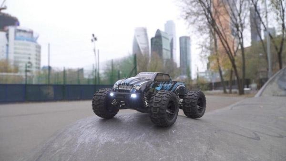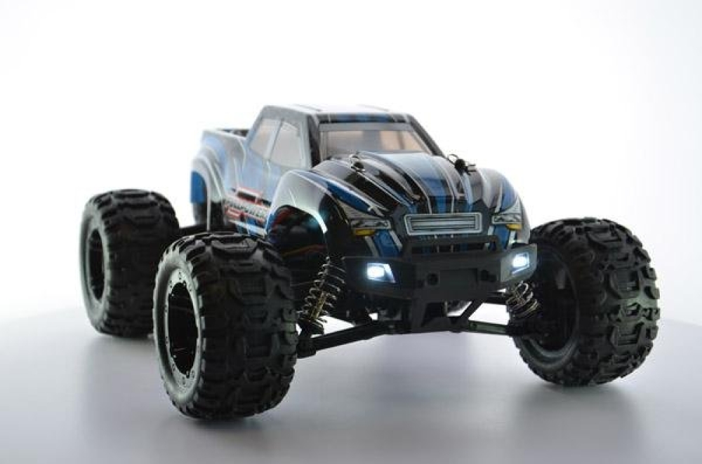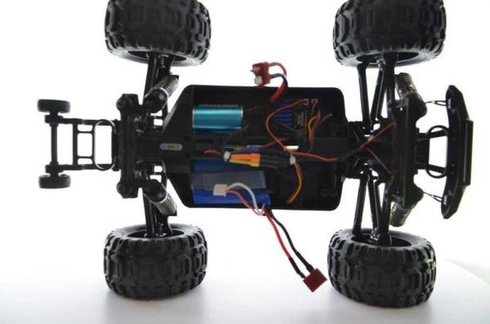 Данная машинка является усовершенствованным монстром модели 1631 от производителя Rtoy. Улучшения коснулись основных механических и электронных узлов, прочности пластика, мощности мотора и многое другое. Это бесколлекторная версия машинки, которая оснащается б/к двигателем и регулятором оборотов, а также Li Po аккумуляторной батареей. За счет этого она развивает скорость до 55 км/ч. Модель получила совершенно новую подвеску с быстрозаменяемыми рычагами и рулевыми тягами. Амортизаторы с завода наполнены специальным силиконовым наполнителем высокой вязкости для безопасных прыжков с трамплинов на высокой скорости. Для прохождения полного бездорожья оснащается постоянным полным приводом с металлическими дифференциалами. Кузов практически не претерпел изменений по сравнению с Remo Hobby за исключением одной важной особенности. Теперь светодиодные фары идут сразу же в комплекте! Их можно включать/выключать с пульта управления. В задней части машинки установлен дополнительный бампер, а также двойной стоппер, который не даст перевернуться машинке при резвом старте.