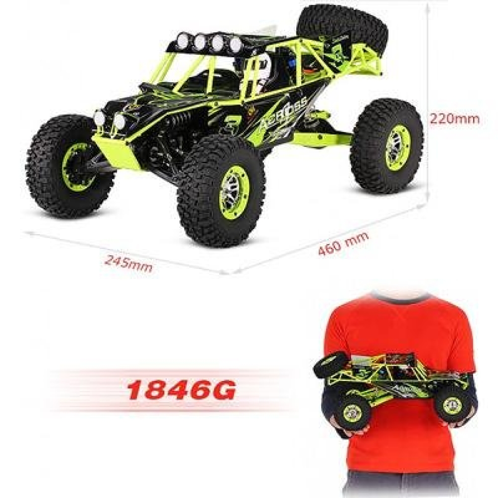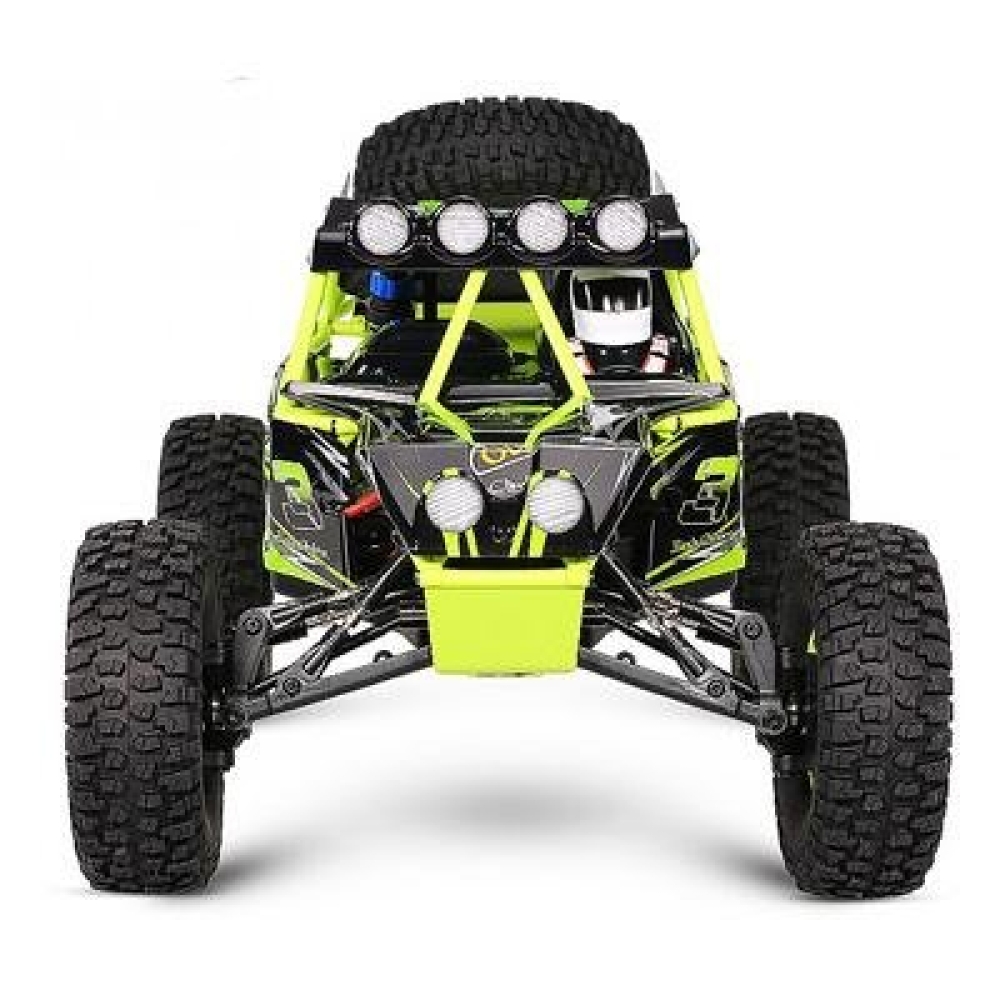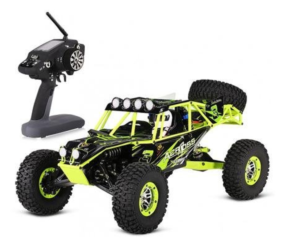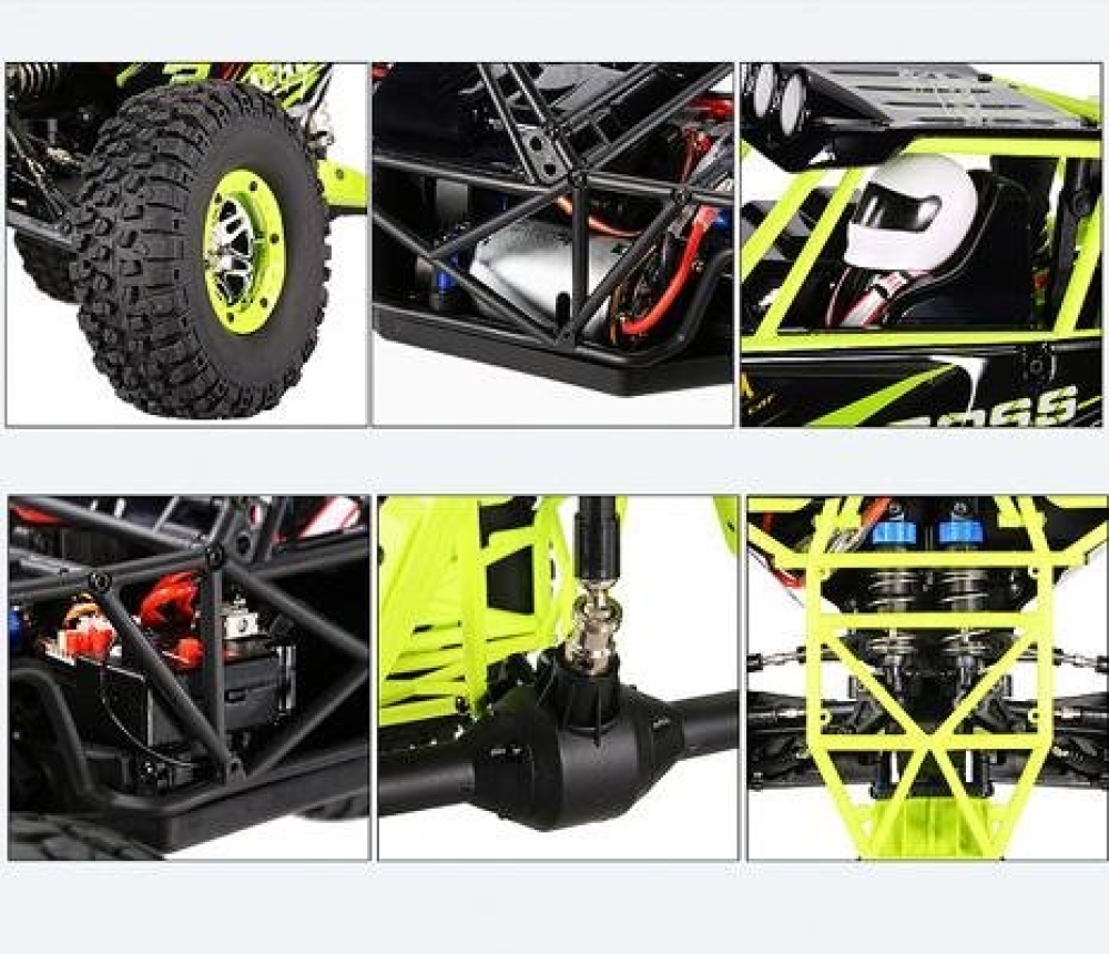 Радиоуправляемый багги WL Toys 4WD RTR масштаб 1:10 2.4G - 10428 - это полноприводный внедорожник от WL Toys в масштабе 1:10, оснащенный надежным коллекторным мотором серии 540. На ровной поверхности этот багги способен разгоняться до 40-50 км/ч, но конструкция шасси разработана так, что позволяет модели карабкаться через сложные препятствия и легко покорять внедорожные трассы. Броский дизайн, привод на все 4 колеса, длинноходная подвеска и возможность установить светодиодные фары - у этой машины есть всё, чтобы сделать преодоление препятствий легким и эффектным. Цвет корпуса - чёрный с зеленым. В комплекте идет фигурка водителя в шлеме, она располагается в салоне.