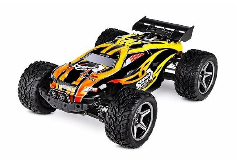 Радиоуправляемый багги WL Toys WL12404 RTR масштаб 1:12 2.4G - WL12404 - это полноприводный внедорожник от WL Toys в масштабе 1:12, оснащенный надежным коллекторным мотором серии 540. На ровной поверхности этот багги способен разгоняться до 45 км/ч. Аппаратура управления 2.4 ГГц позволит Вам контролировать машину в пределах 100 метров. Цвет корпуса - чёрный с желто-оранжевыми волнами.