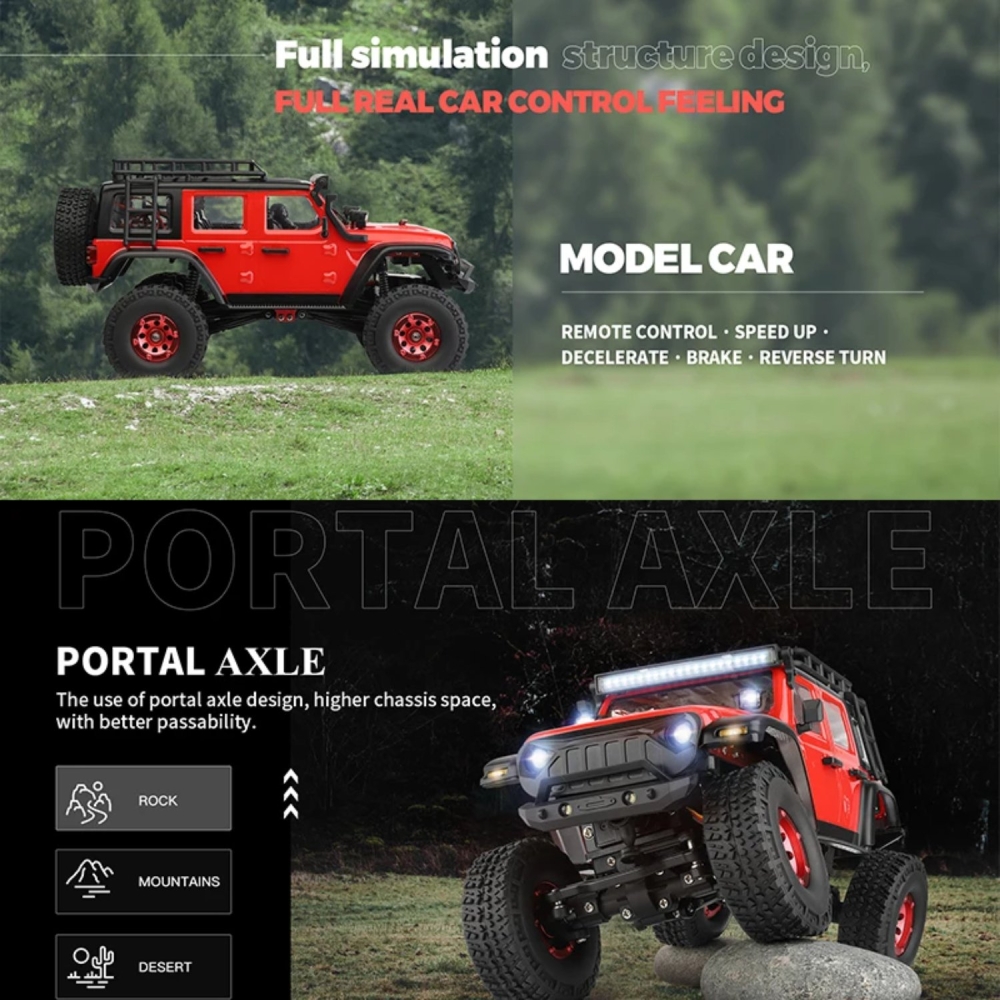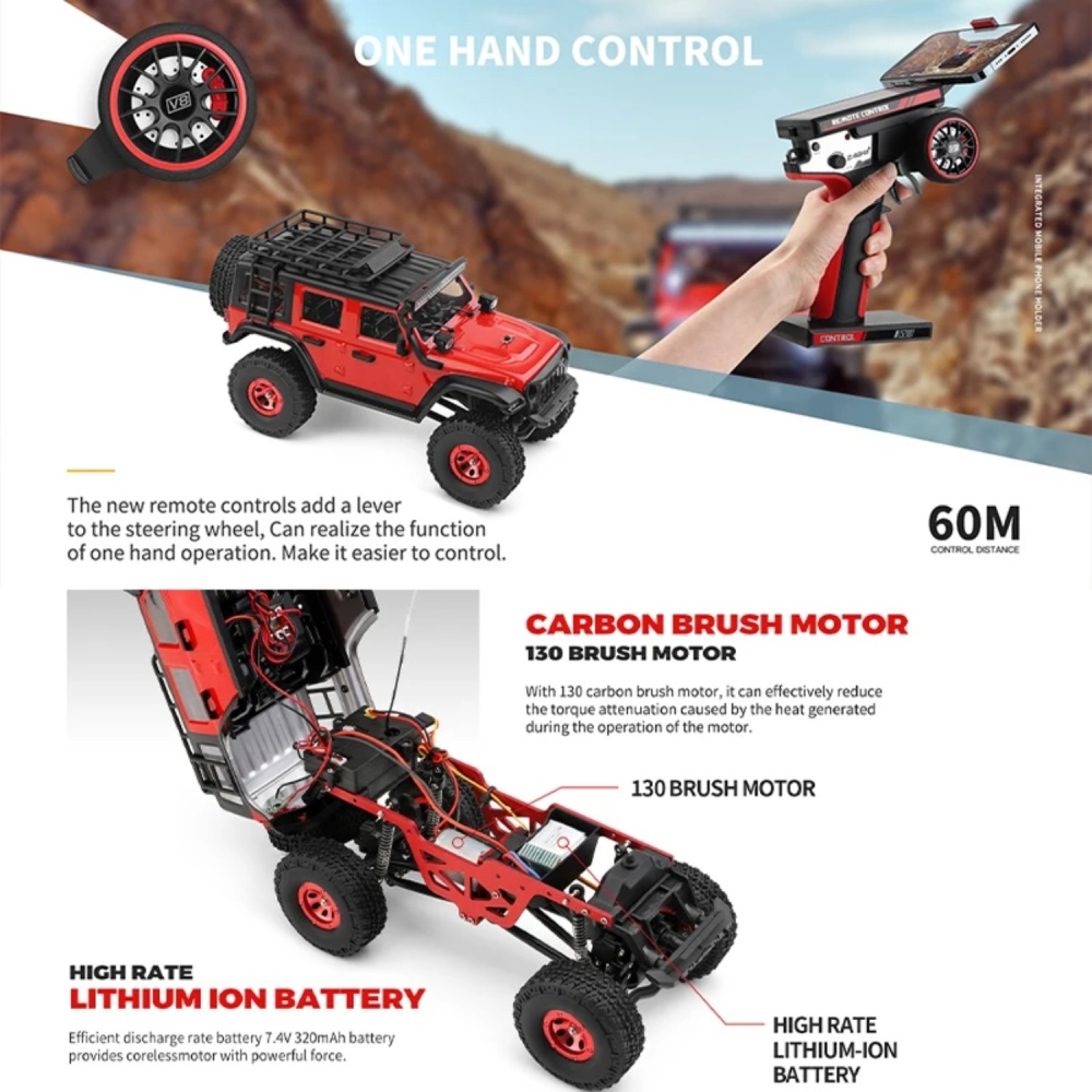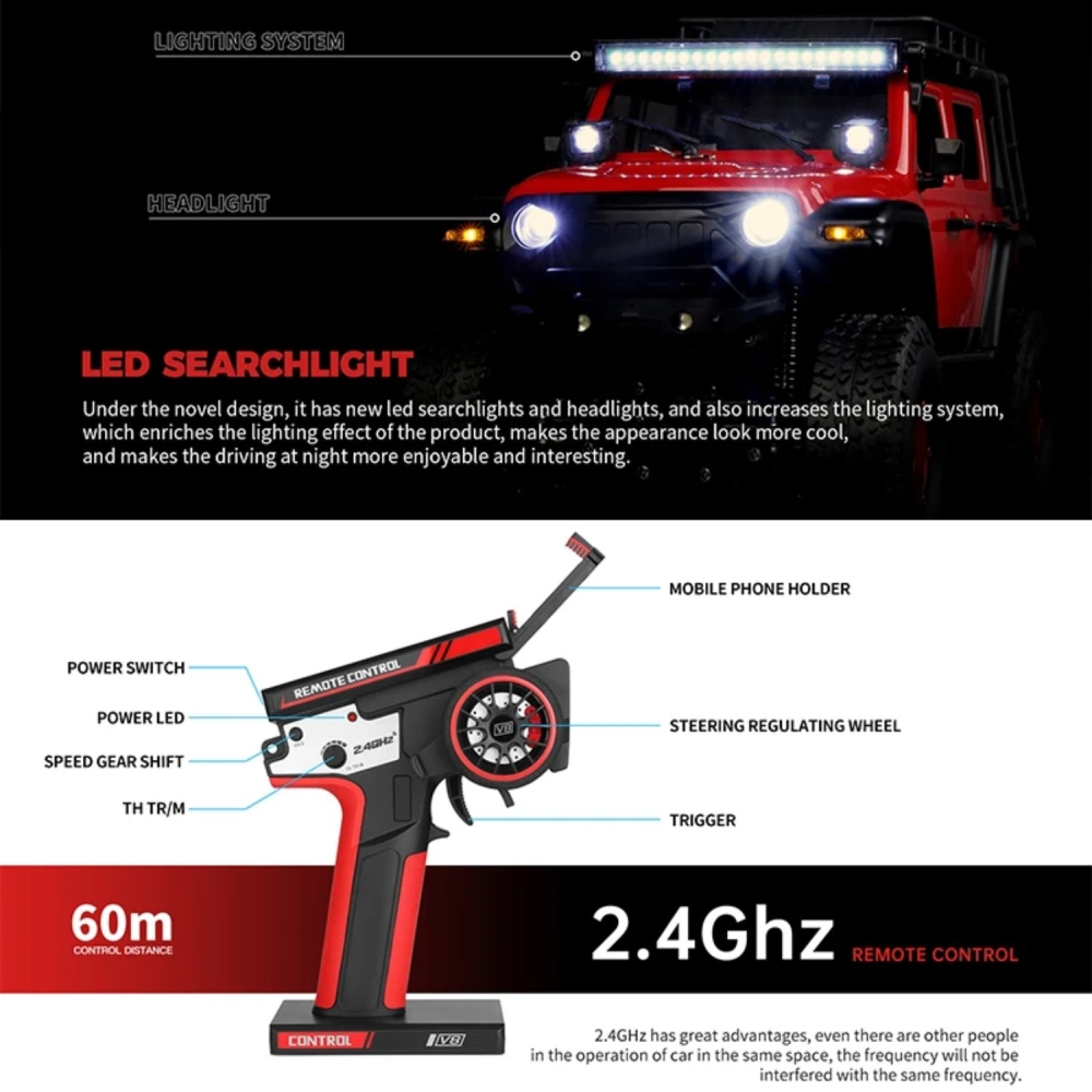Реалистичные вездеходные колеса и сверхмягкие шины с противоскользящим покрытием позволяют гусеничному внедорожнику легко подниматься по склонам с уклоном более 40 градусов. Яркая подсветка позволит всегда быть на виду, даже в темное время суток.
