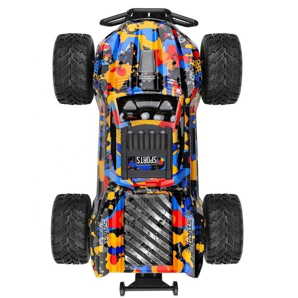 Модель имеет в стоке большое количество металлических деталей: амортизаторы, держатели амортизаторов, рычаги, стабилизаторы, шестерни и дифференциалы, и алюминиевая пластина шасси толщиной 2мм. Лобовые столкновения даже в сильный мороз не будут проблемой, машинка не сломается пополам даже на скорости 75 км/ч. Специальная резина позволяет кататься на любом типе поверхности от асфальта до гравия. Машину можно использовать в любую погоду, в грязь, дождь и снег. Машинка имеет низкий центр тяжести, что позволяет ей проходить крутые повороты на максимальной скорости. Имеет 2 дифференциала и карданный вал, что обеспечивает полный привод и высокую проходимость в любых дорожных условиях.