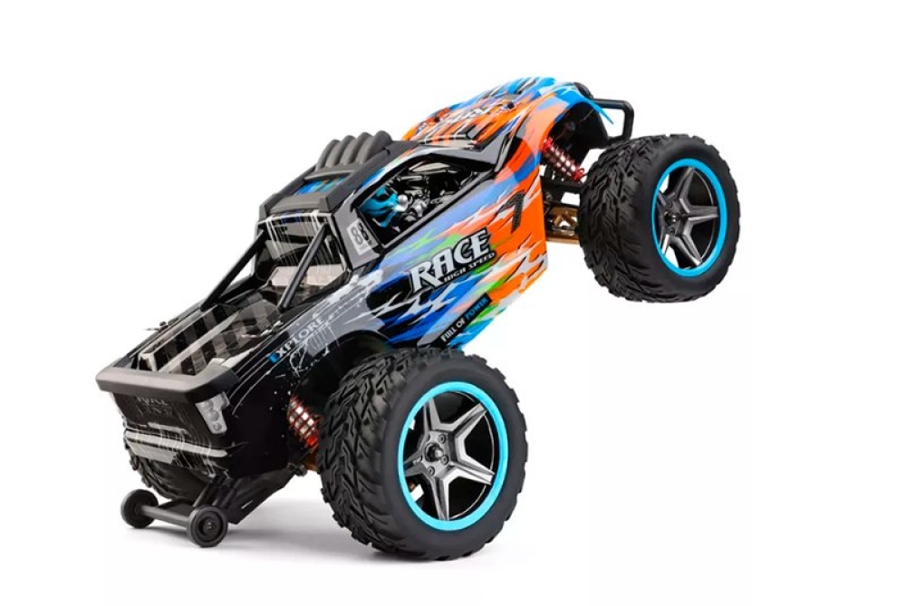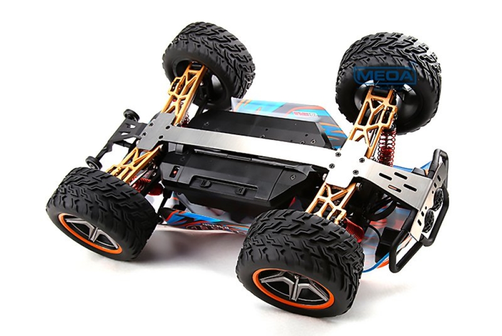 Модель имеет в стоке большое количество металлических деталей: амортизаторы, держатели амортизаторов, рычаги, стабилизаторы, шестерни и дифференциалы, и алюминиевая пластина шасси толщиной 2мм. Лобовые столкновения даже в сильный мороз не будут проблемой, машинка не сломается пополам даже на скорости 75 км/ч. Специальная резина позволяет кататься на любом типе поверхности от асфальта до гравия. Машину можно использовать в любую погоду, в грязь, дождь и снег. Машинка имеет низкий центр тяжести, что позволяет ей проходить крутые повороты на максимальной скорости. Имеет 2 дифференциала и карданный вал, что обеспечивает полный привод и высокую проходимость в любых дорожных условиях.