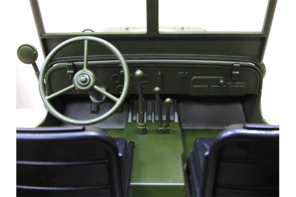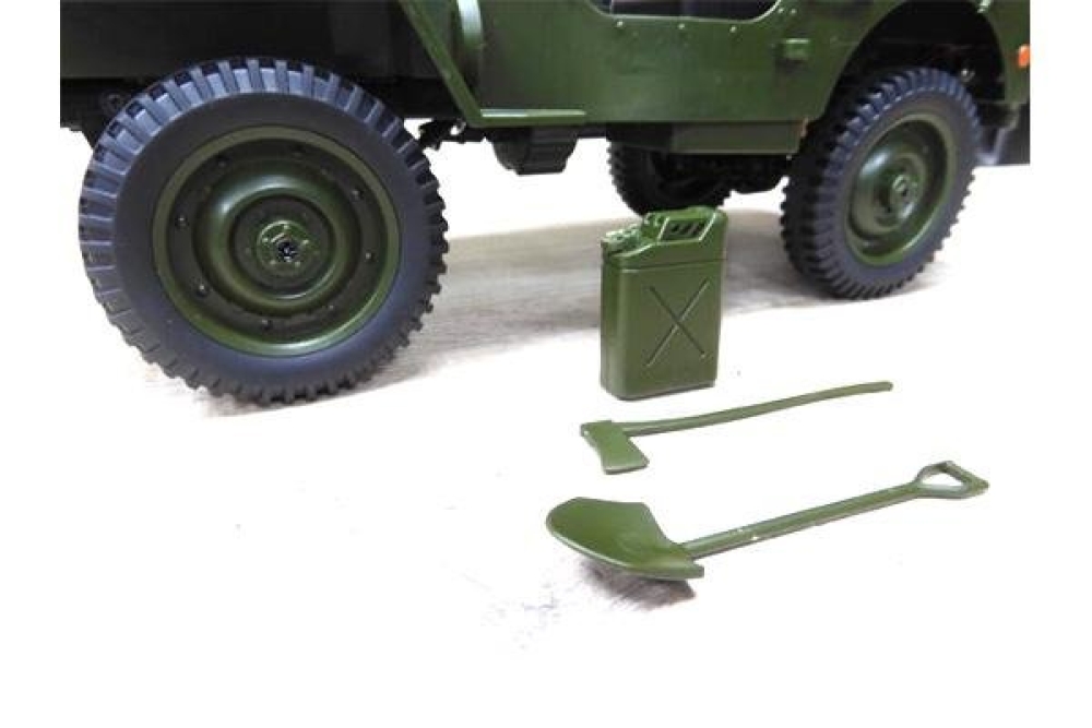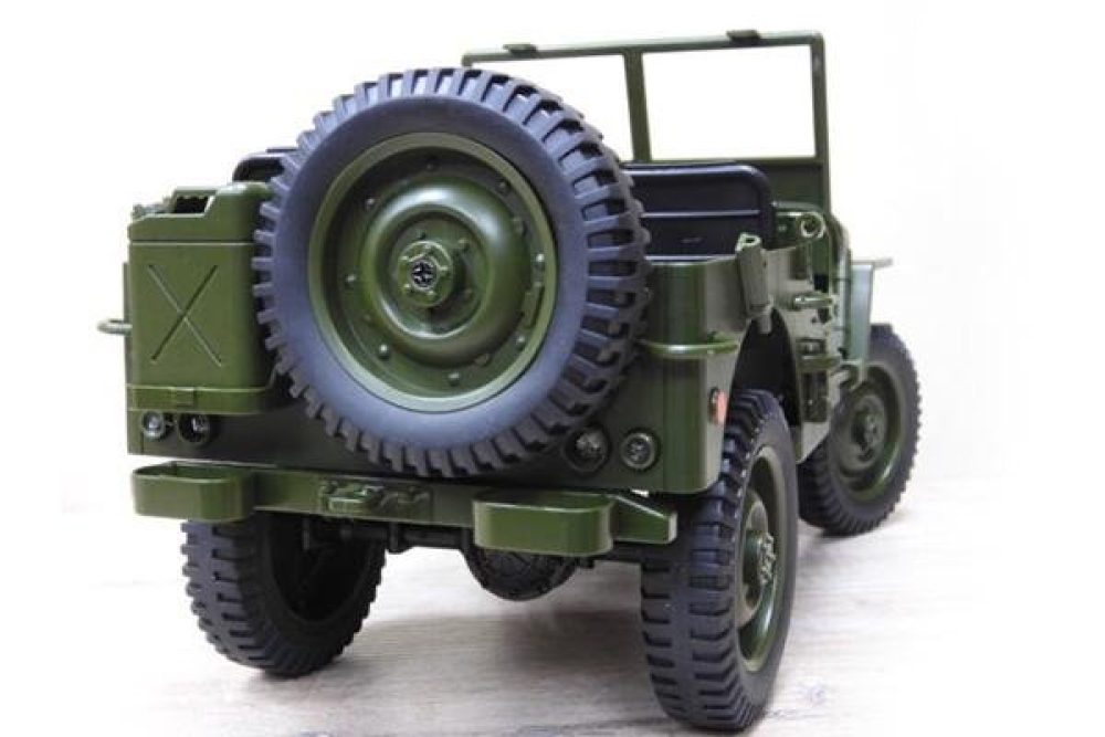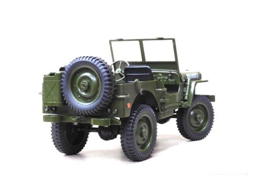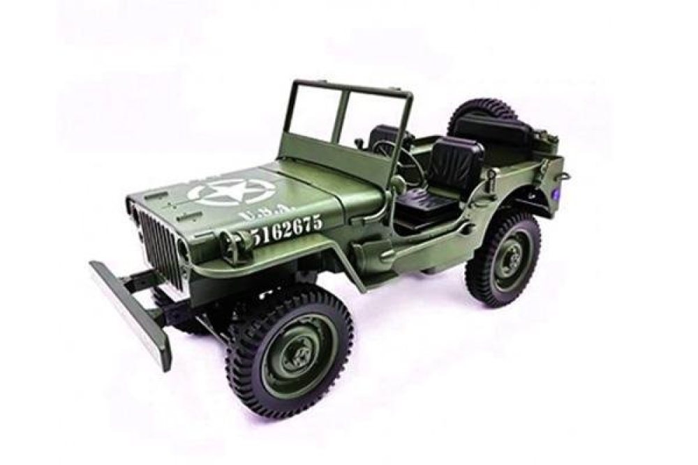 Радиоуправляемый военный джип – мечта каждого любителя стиля милитари. Представленная модель является подробной копией американского армейского автомобиля повышенной проходимости времён Второй мировой войны. Модель отличает реалистичная масштабная детализация, включающая правдоподобно исполненные зеркала заднего вида, приборные панели, шины и металлические поручни лестничной рамы. Вращающийся руль и открывающиеся двери усиливают эффект реалистичности, а светодиодные фары достаточно яркие, чтобы освещать путь машины в темное время суток. Комплектация модели включает также съемные аксессуары - канистру, лопату и топор. Джип изготовлен из прочного безопасного пластика и оснащен рессорами с амортизаторами, обеспечивающими надежность, необходимую для агрессивных действий на пересеченной местности. Может развивать скорость до 15 км/ч и работать до 15 минут без подзарядки в достаточно интенсивном режиме. Управление производится по 4 каналам: движение вперёд/назад, вправо/влево. Радиус действия пульта управления до 50 метров. Полный привод 4WD делает эту машину адаптируемой практически к любой ситуации и стилю вождения. Порадует поклонников крутых внедорожников и любителей радиоуправляемых моделей всех возрастов!