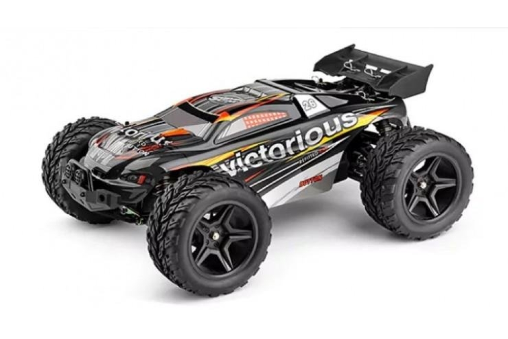 Особенности модели: Полная комплектация! Мощный коллекторный мотор, разгоняющий модель до 35 км/ч! Блок управления с заводской влагозащитой. Независимая подвеска на пружинах и колеса с мягкими покрышками позволяют без проблем справляться с бездорожьем и эффектно прыгать на трамплинах. Аккумулятор с высокой токоотдачей и возможностью быстрой зарядки. Яркий и агрессивный дизайн кузова делает заезды еще более зрелищными. Удобный компактный пульт пистолетного типа. Детали шасси выполнены из прочного пластика, выдерживающего ударные нагрузки после прыжков и столкновений