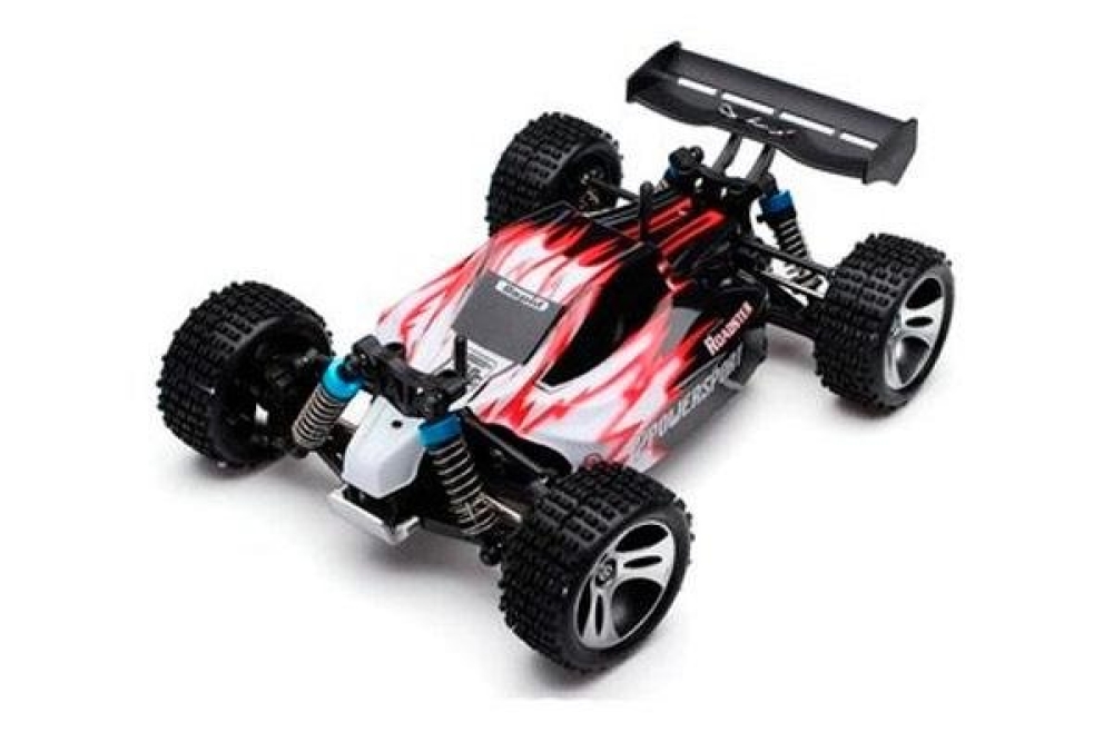 Машинка багги на радиоуправлении WLToys A959 имеет полный привод 4WD и мощный коллекторный двигатель 390 класса. Он способен развивать скорость до 40 км/ч, и не требует особого обслуживания. Для охлаждения электромотора предусмотрен радиатор охлаждения. Оснащен маслонаполненными амортизаторами, которые точно обрабатывает любые неровности и влагозащитной электроникой. Трансмиссия изготовлена с применением металлических деталей, также как и подвеска. Например приводы колес выполнены из стали. Низкий центр тяжести делает данную модель управляемой и маневренной, также как и шипованные резиновые покрышки. Отлично подойдет для заездов как по шоссе, так и для полного бездорожья. Это RTR версия, т.е. все необходимое для запуска идет в комплекте.