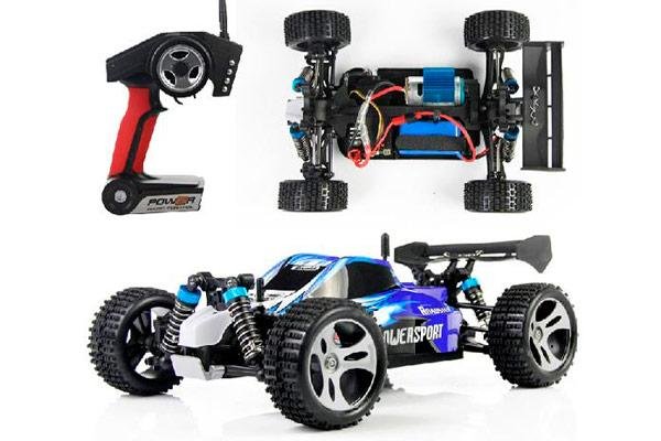 Машинка багги на радиоуправлении WLToys A959 имеет полный привод 4WD и мощный коллекторный двигатель 390 класса. Он способен развивать скорость до 40 км/ч, и не требует особого обслуживания. Для охлаждения электромотора предусмотрен радиатор охлаждения. Оснащен маслонаполненными амортизаторами, которые точно обрабатывает любые неровности и влагозащитной электроникой. Трансмиссия изготовлена с применением металлических деталей, также как и подвеска. Например приводы колес выполнены из стали. Низкий центр тяжести делает данную модель управляемой и маневренной, также как и шипованные резиновые покрышки. Отлично подойдет для заездов как по шоссе, так и для полного бездорожья. Это RTR версия, т.е. все необходимое для запуска идет в комплекте.
