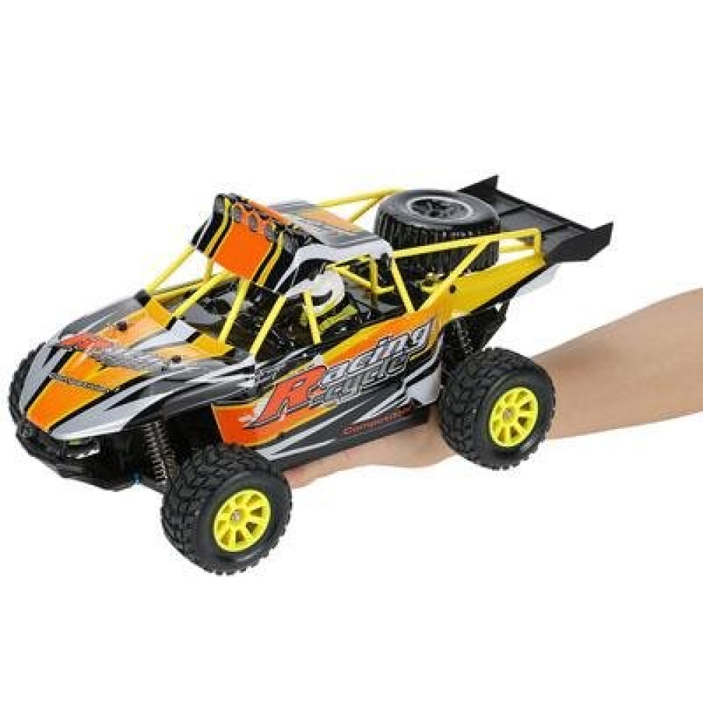 Небольшая доступная машинка от компании WLToys для любителей багги. Имеет яркий быстросъемный кузов, который усилен трубчатой рамой, и водителя в комплекте. Полный привод обеспечит высокую проходимость и устойчивость на дороге, а также уверенный резкий старт. Резиновые колеса обеспечивают хорошее пятно покрытия на поверхности, а это в свою очередь, надежное сцепление с дорогой. Специальный протектор колес позволит использовать машинку на любой поверхности.