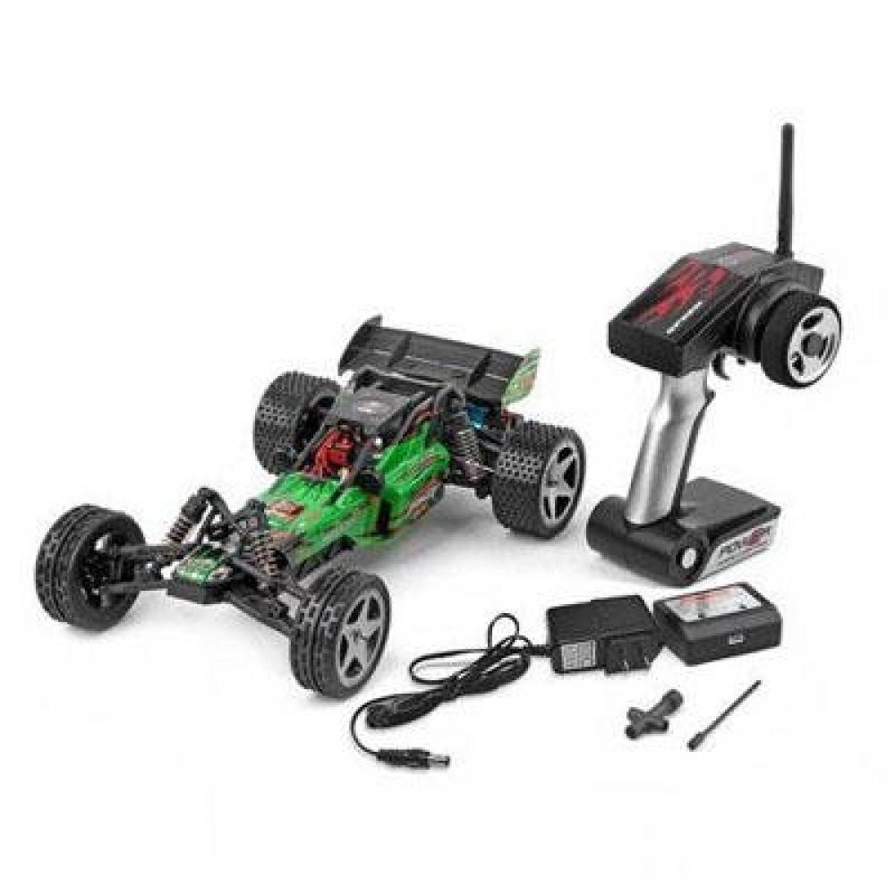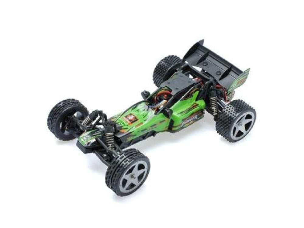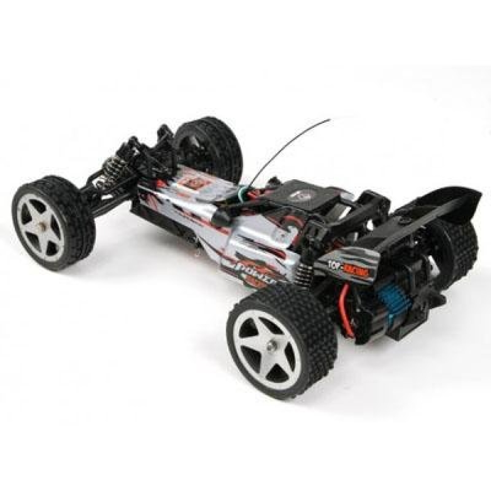 Багги на пульте управления WLToys L959 оснащен мощным мотором коллекторного типа RC380. На модели установлена заднеприводная трансмиссия с металлическими деталями. Для коллекторной багги эта модель достаточно быстрая, максимальная скорость достигает 40 км/ч. Подойдет для полного бездорожья, а также заездов по шоссе и гравию. Можно ездить по лужам. Это RTR версия, т.е. все необходимое для запуска идет в комплекте. Шасси выполнена из прочного ABS пластика. Амортизаторы имеют металлические креления и заполнены специальным маслом. Приводные валы в подвеске выполнены из металла и могут выдержать существенный крутящий момент.