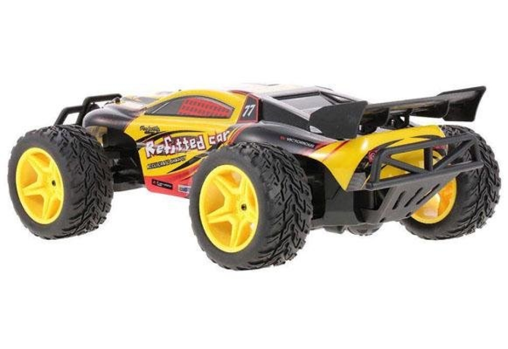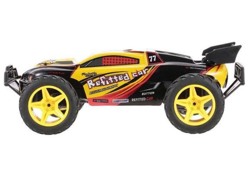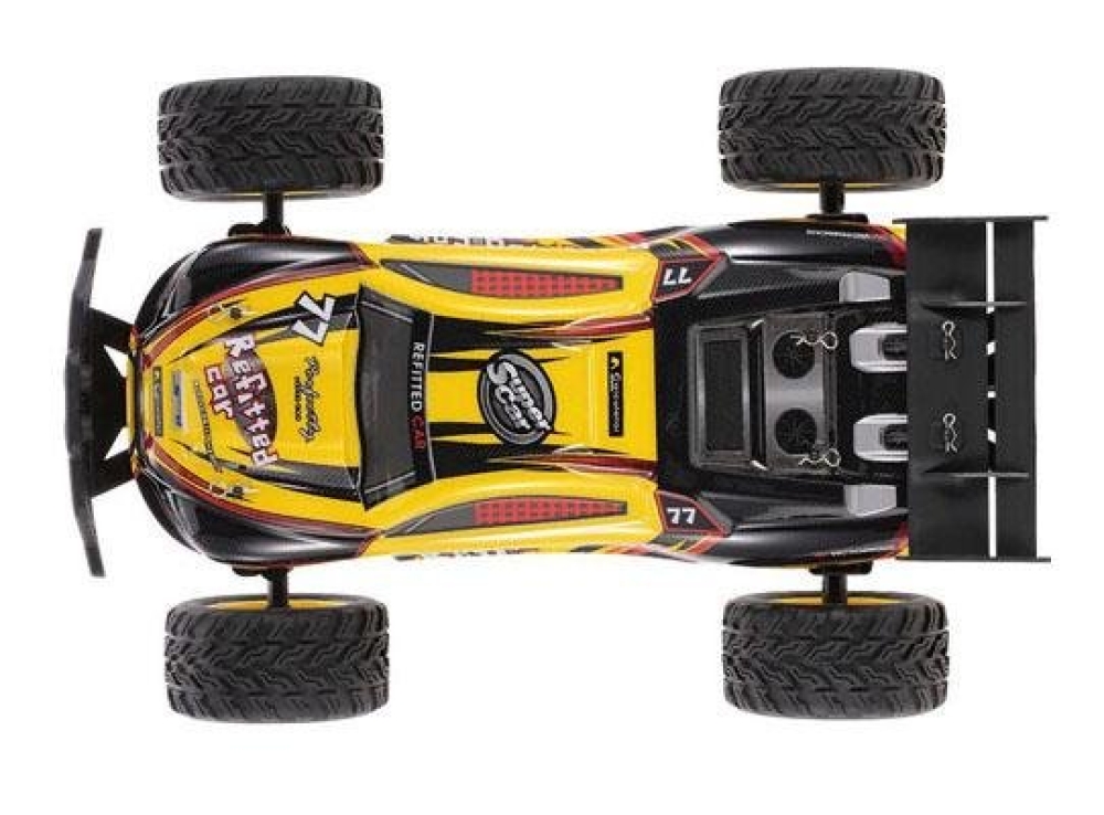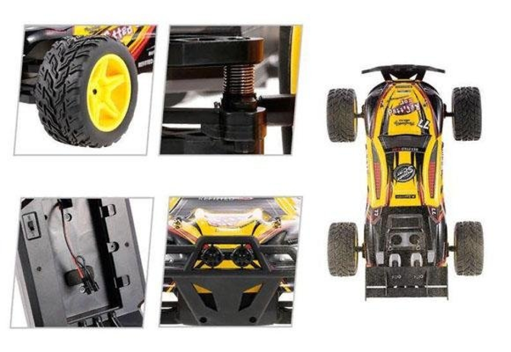Быстрая и проходимая игрушка для детей - багги большого размера (длина более 40 см), станет отличным подарком для любого ребенка. Имеет очень простое 2-х канальное управление. Колеса выполнены из мягкой резины имеют универсальный протектор, так что модель можно эксплуатировать по гравию, песку или асфальту. За счет низкого центра тяжести машинка устойчива в крутых поворотах. За счет амортизирующих бамперов спереди и сзади багги отлично переносит сильные столкновения и опрокидывания.