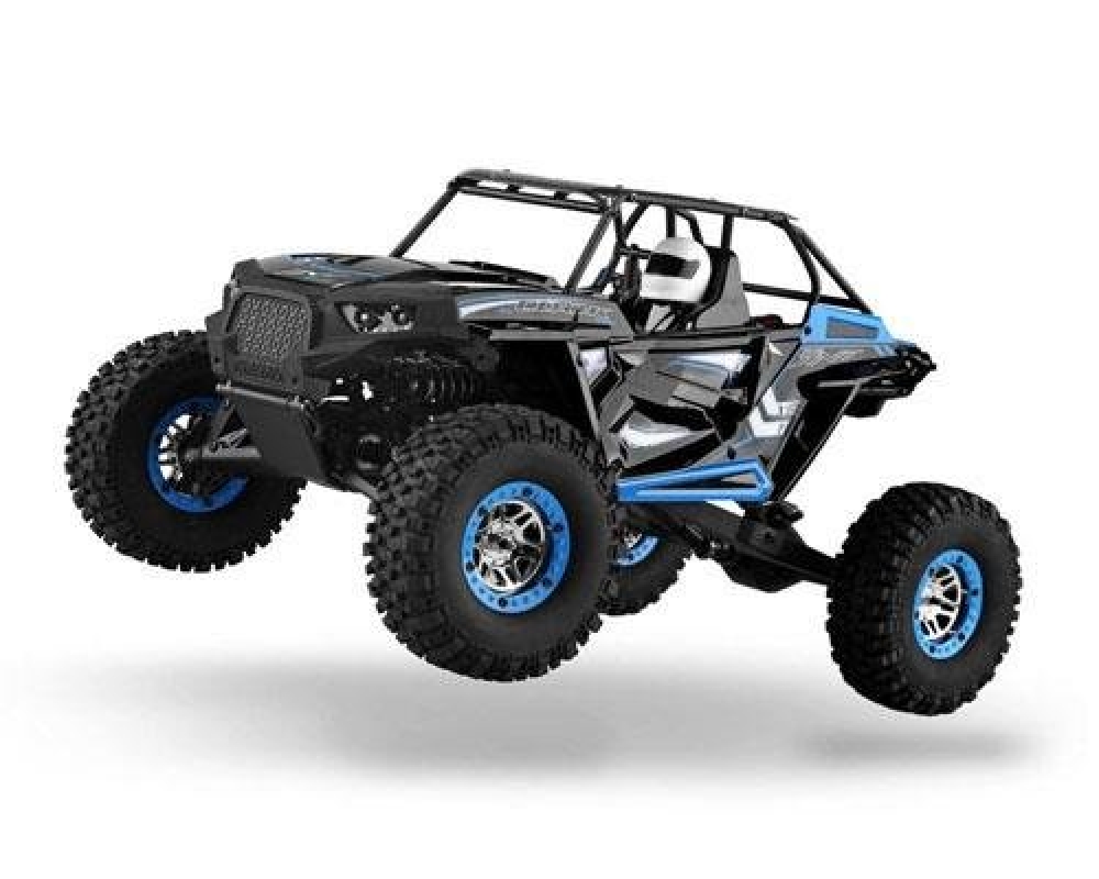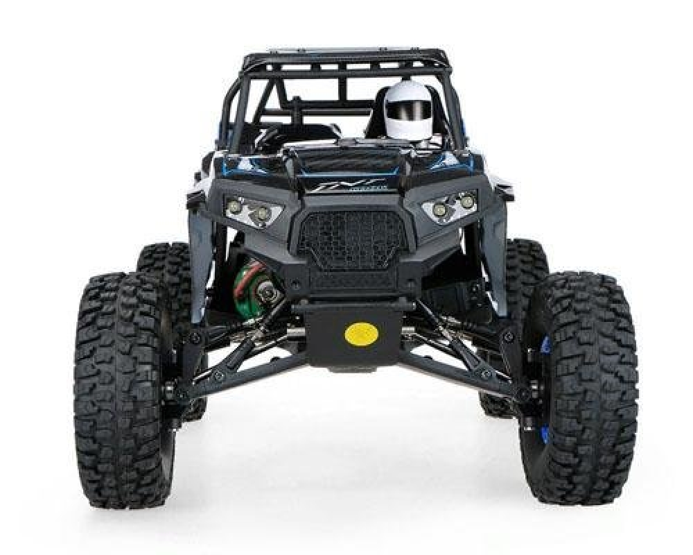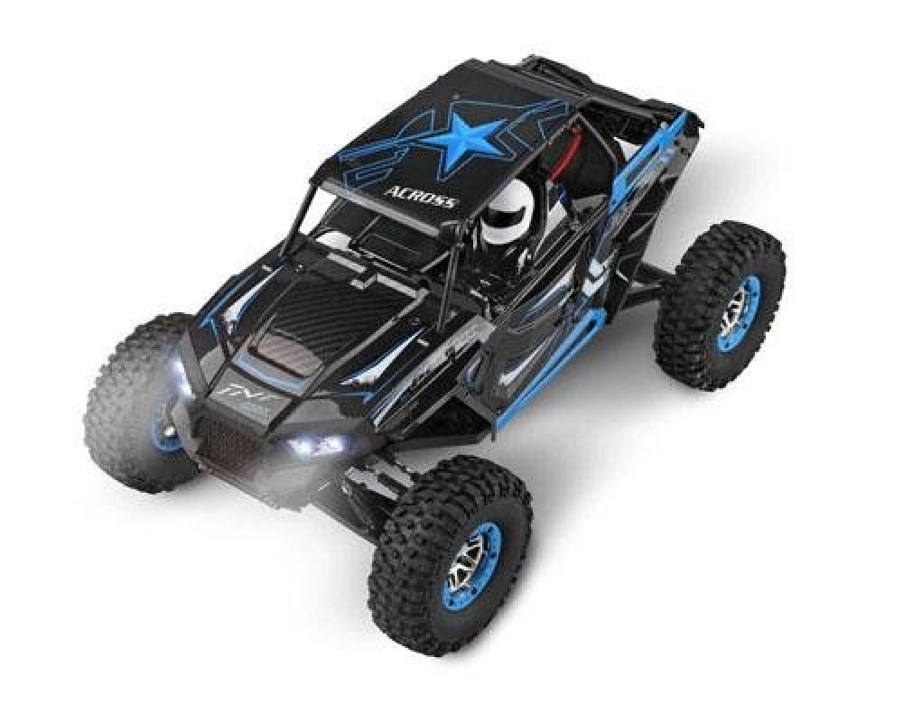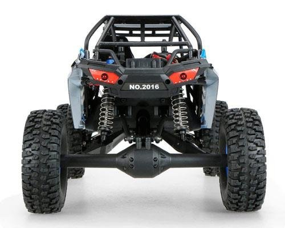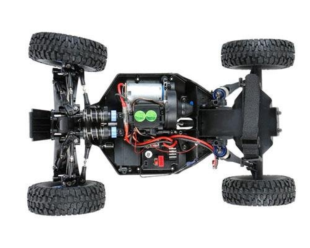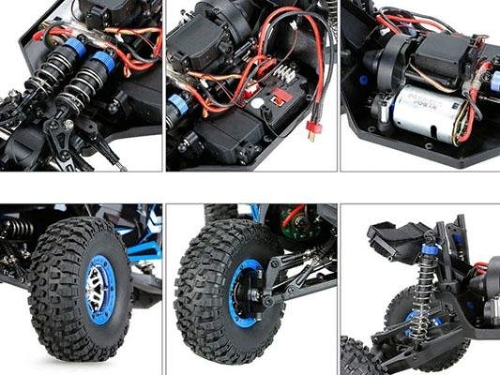 Большая багги на уже хорошо знакомом шасси от wltoys с небольшими доработками. Передняя подвеска - это классическая независимая многорычажная подвеска с регулируемыми рычагами и тягами из стали. Однако амортизаторы установлены продольно, что позволяет существенно снизить также и эффект от лобовых столкновений. Задняя - полузависимая, представляет собой мост с редуктором. Все приводы, чашки также из металла. Вы можете регулировать жесткость подвески, а также менять высоту дорожного просвета. Коллекторный мотор расположен по центру автомобиля и через системы карданных валов обеспечивает модель постоянным полным приводом. Электроника имеет хорошую влагозащиту, так что без проблем катайтесь по грязи и лужам. Корпус выполнен из плотного пластика с дугами безопасности, в кабине расположился водитель в шлеме.