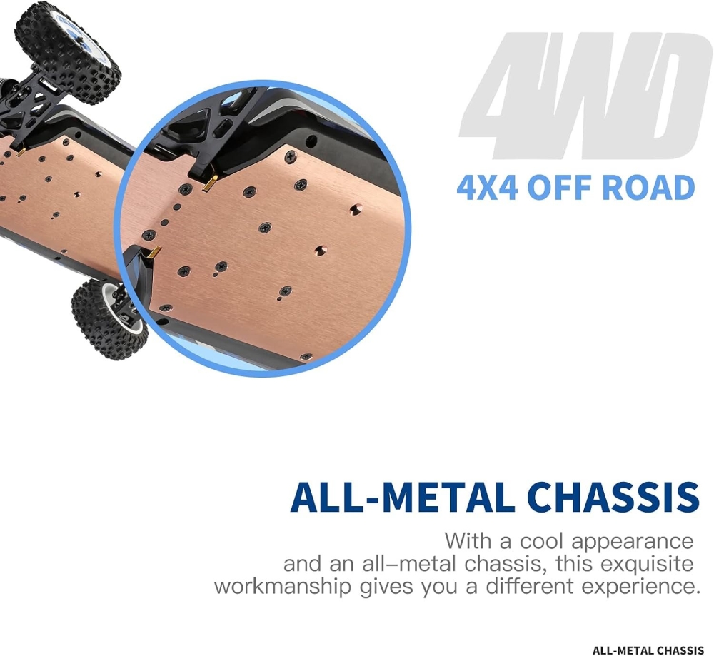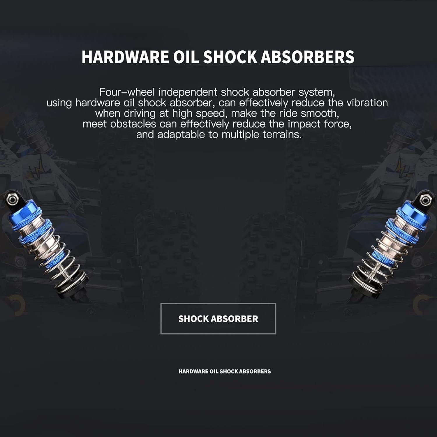 Машинка хорошо держит дорогу за счет заниженного центра тяжести, масленозаполненных алюминиевых амортизаторов и довольно большого веса. В базе установлено большое количество металлических деталей, которые сложнее сломать в отличие от пластика.