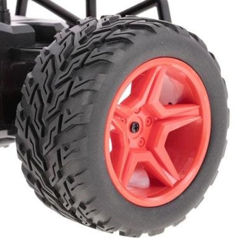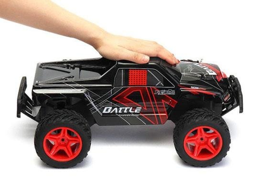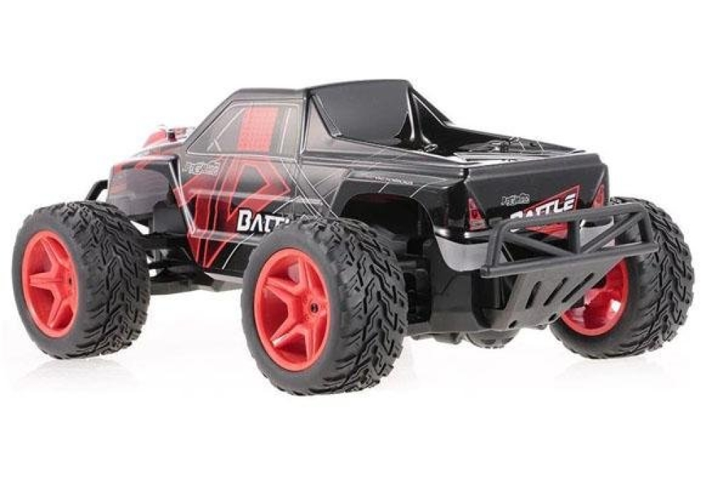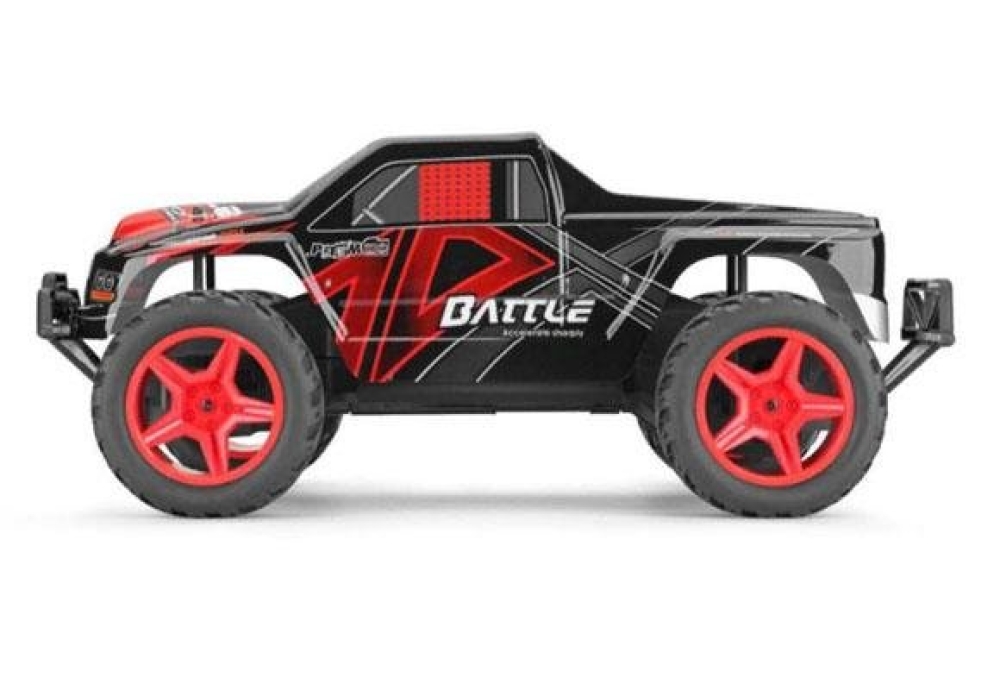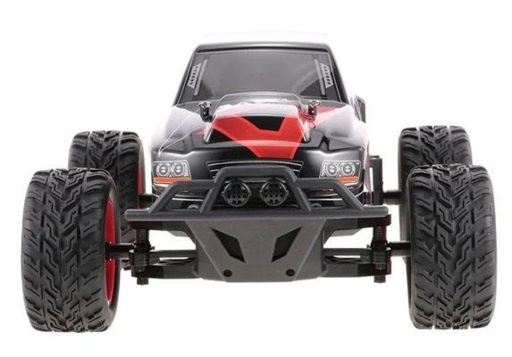 Не дорогой монстр трак для детей от 4-х лет. Оснащен задним приводом, который позволит дрифтить по ровной поверхности и заезжать в легкое бездорожье на улице. По шоссе модель способна развивать скорость более 30 км/ч. Имеет крепкую пружинную подвеску и амортизирующие бамперы. Машинка имеет крупные размеры, ее длина почти полметра!