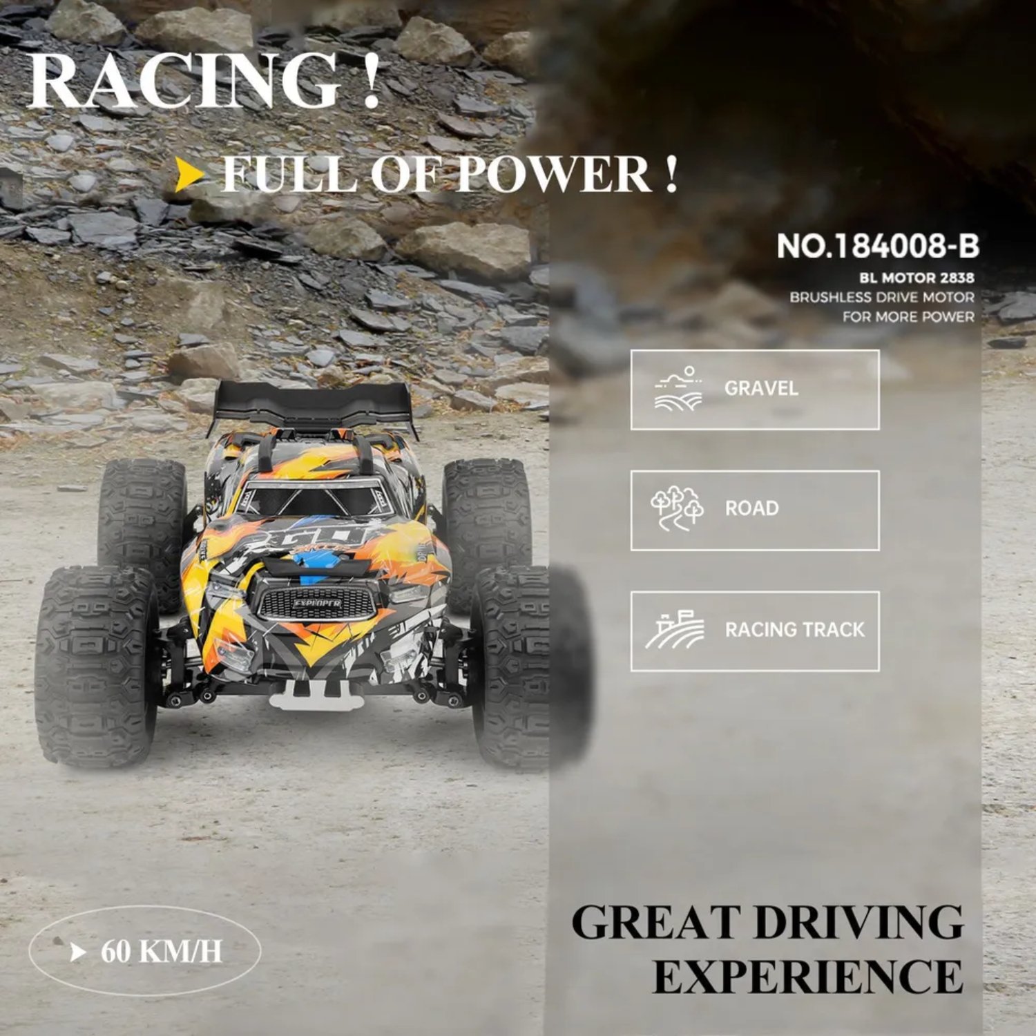 Радиоуправляемый монстр WLToys Brushless 4WD RTR масштаб 1:18 2.4G - WLT-184008 - полноприводный радиоуправляемый внедорожник в масштабе 1:18 ускоряется как пуля, выпущенная из ствола. Автомобиль молниеносно срывается с места, отрывая передние колеса от земли, и мчится со скоростью 60 километров в час, легко перепрыгивая через ухабы и кочки. Не надо выбирать дорогу получше, полноприводный внедорожник сам проложит маршрут.