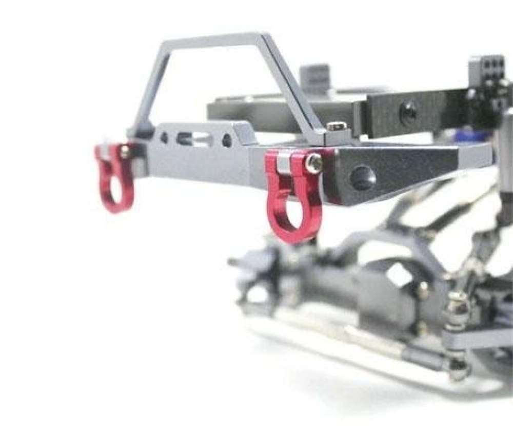 Бампер передний металлический тюнингованный с двумя красными сцепными проушинами для радиоуправляемых моделей WPL: