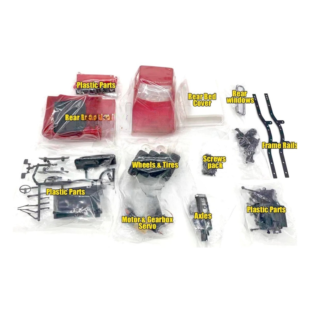 Данный набор предоставляет детали для сборки краулера модели Toyota Hilux 1:16 4WD, без аккумулятора, регулятора скорости, пульта и батареи. Используйте детали как запчасти для своего внедорожника или соберите новый с нуля.