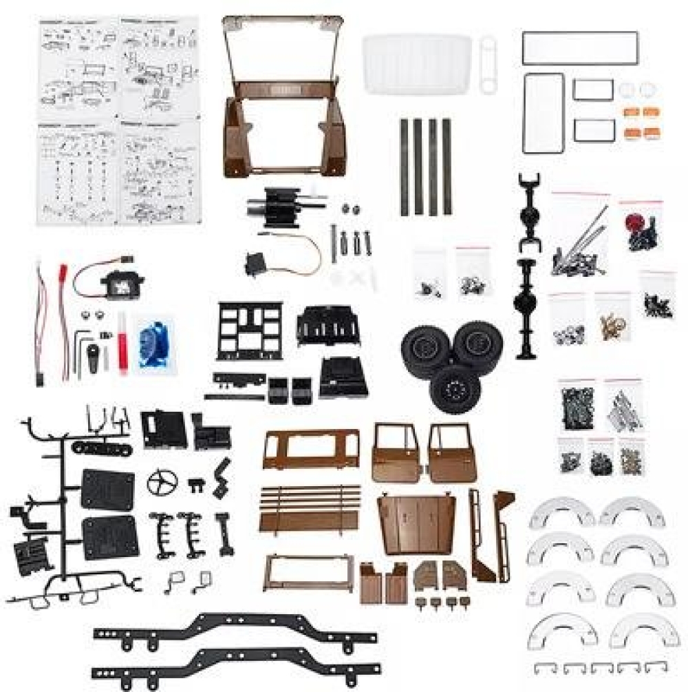 Данный набор предоставляет детали для сборки модели Toyota Land Cruiser FJ45 в масштабе 1:16, без аккумулятора, регулятора скорости, пульта и батареи. Используйте детали как запчасти для своего внедорожника или соберите новый с нуля.