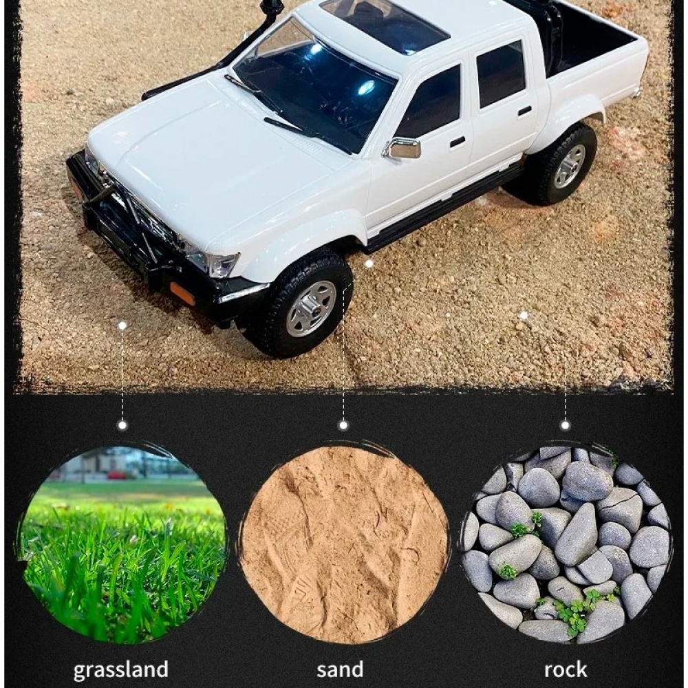 Радиоуправляемая машина WPL пикап Hilux Crew Cab (белая) 4WD 2.4G 1/16 RTR - D-64-1