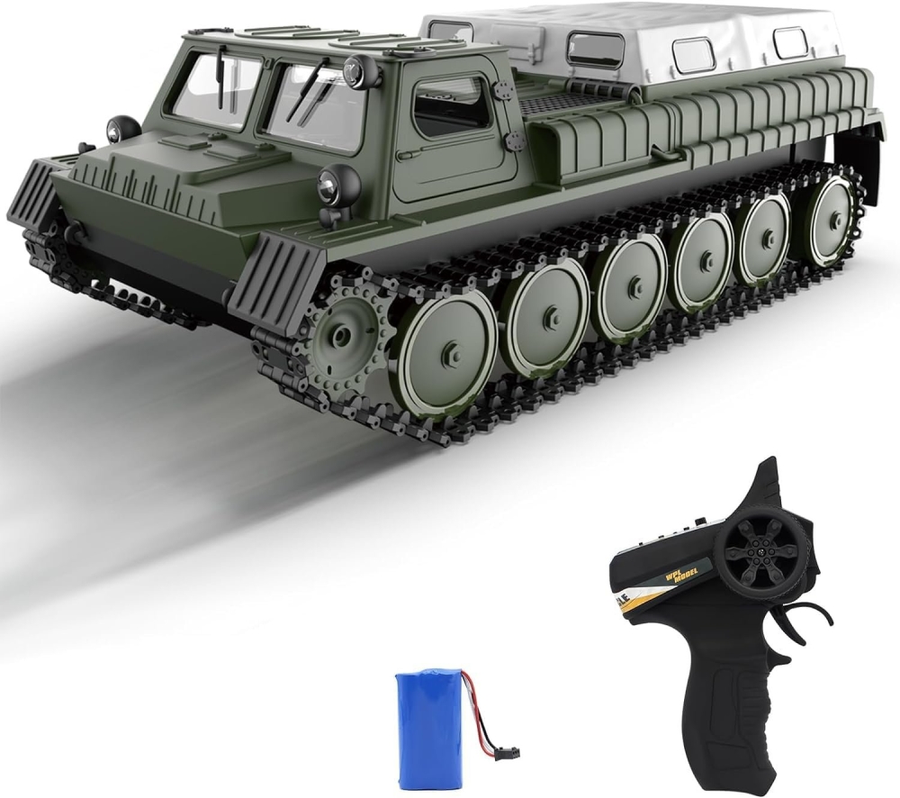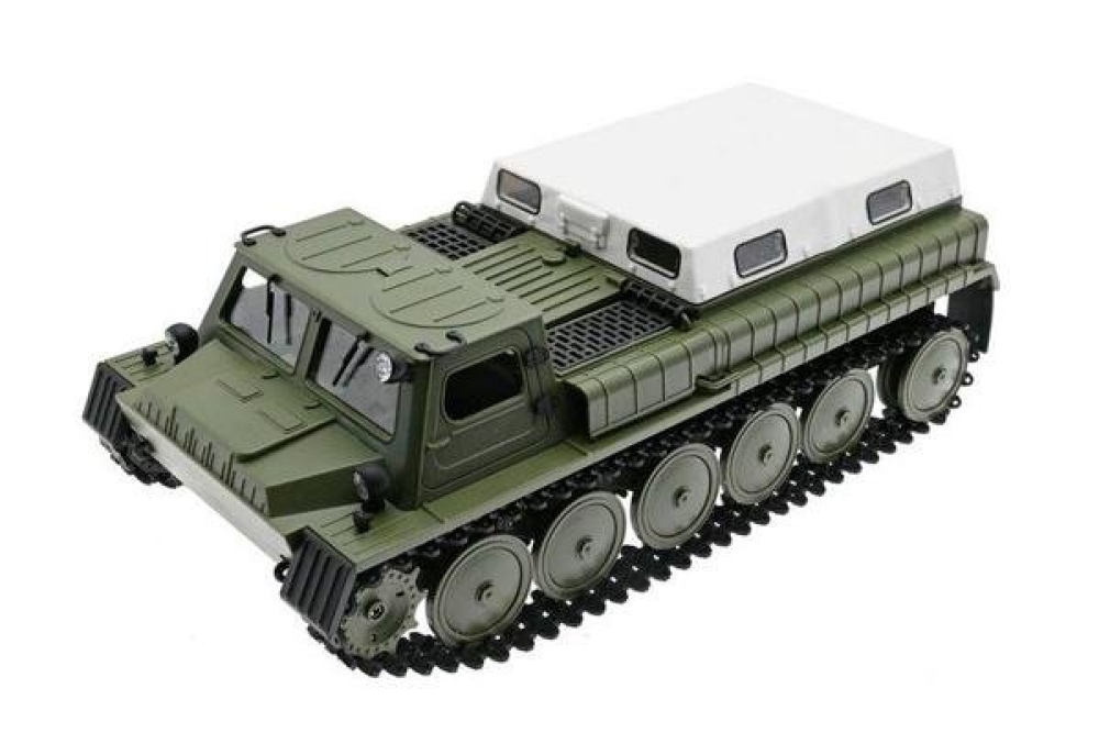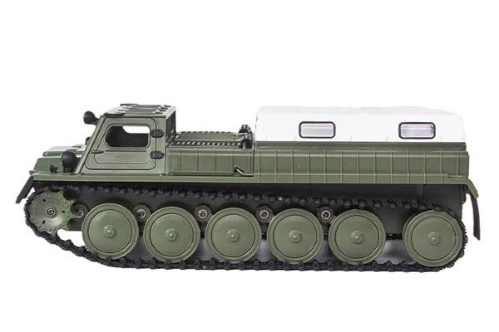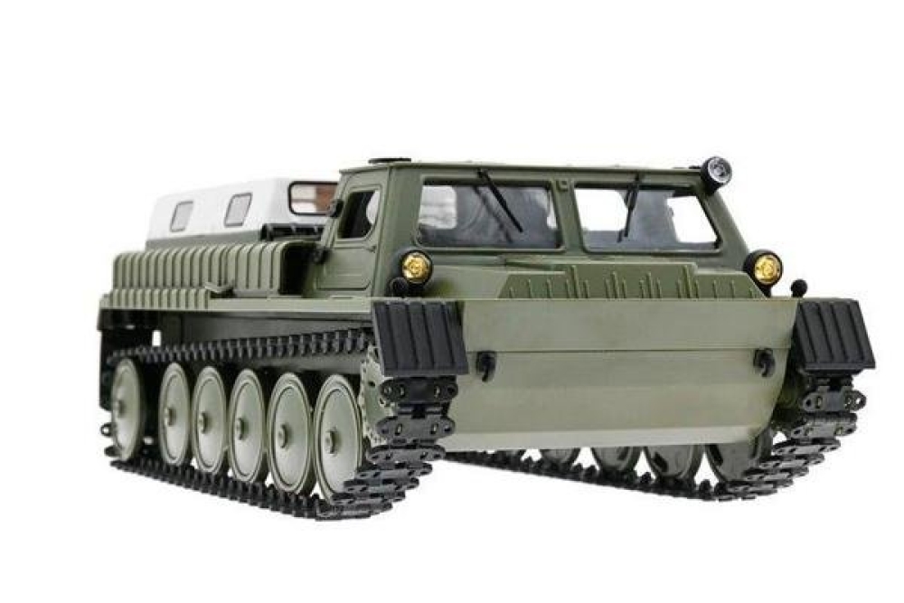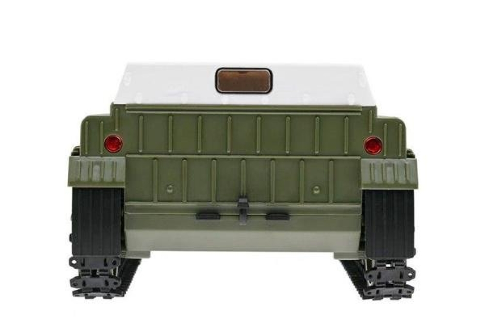 Вездеход двигается вперед/назад, поворачивает вправо и влево, как любая модель. Вращение на 360 градусов на месте также доступно для WPL E-1, что делает его очень маневренным. Вездеход способен развивать скорость более 15 км/ч. Двухгребневая гусеница выполнена одной лентой и не спадает при езде. Все опорные катки двигаются. Модель имеет открывающиеся двери, поэтому можно рассмотреть кабину и место водителя. В задней части расположен тент, который можно легко снять для перевозки различных грузов.