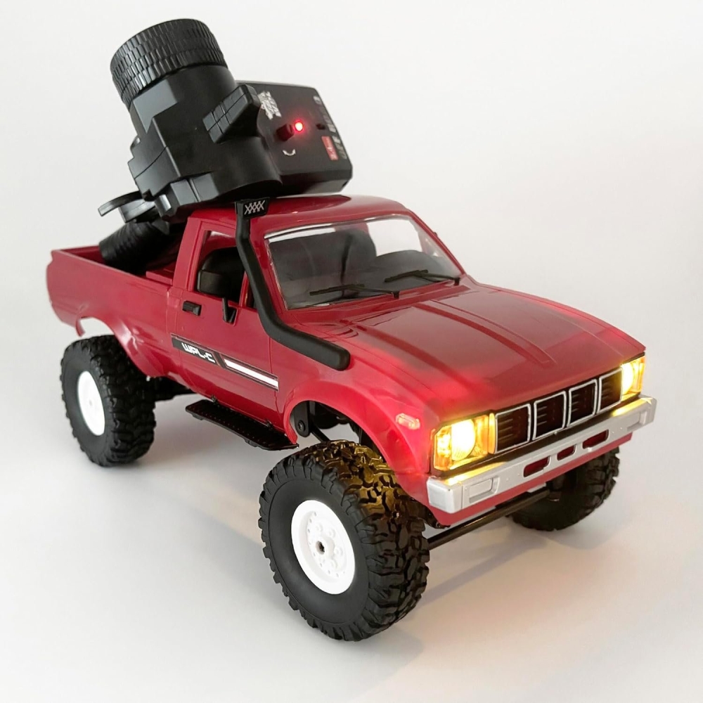 Радиоуправляемый краулер WPL Military Truck Buggy Crawler 1:16 RTR 4WD – это реалистичная модель внедорожника с длинноходной пружинной подвеской, мощным коллекторным двигателем и полным карданным приводом. Выпускается в нескольких вариантах окраски, корпус данной модели - тёмно-красного цвета. Машинка оснащена светодиодными фарами и большими колесами с мягкими резиновыми шинами, обеспечивающими грузовику высокую проходимость в условиях бездорожья и темноты. Машина без проблем может преодолевать препятствия и небольшие камни. Люк открывается, чтобы можно было установить батарею, аккумулятор спрятан под кабиной. Через окна можно разглядеть детали салона. Пульт куркового типа.