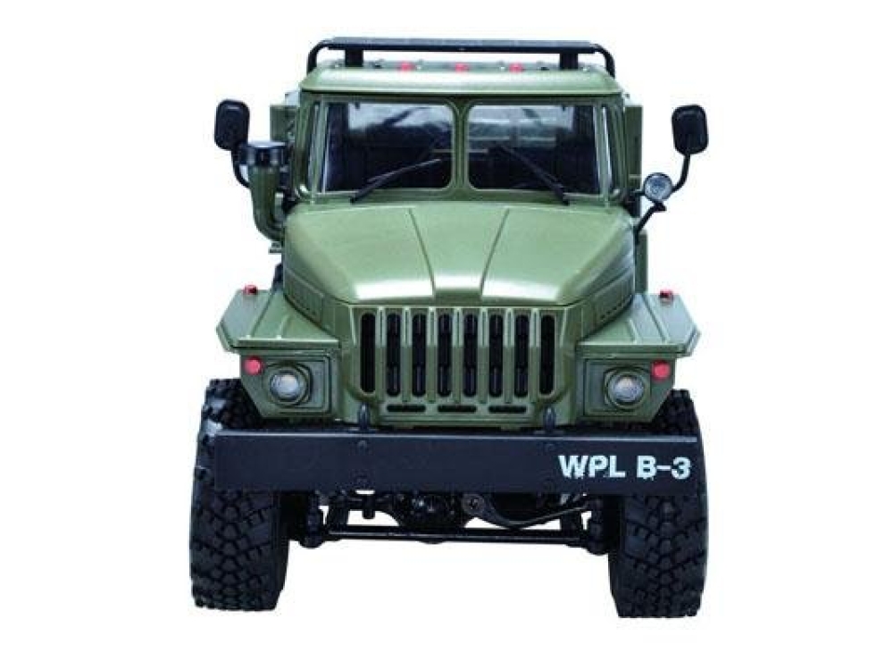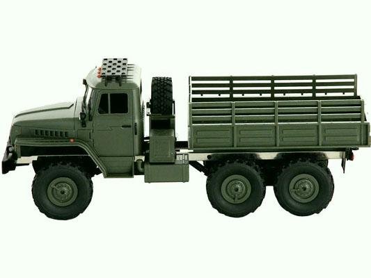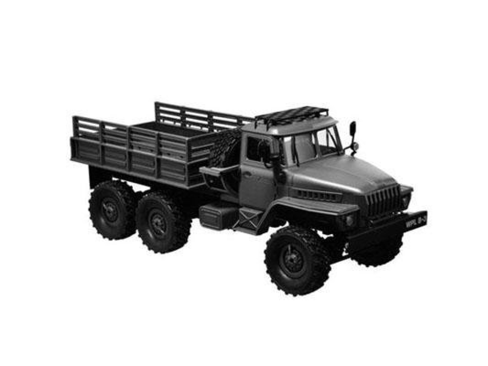 WPLB-36-R – точная копия советского грузовика «Урал», выполненная в масштабе 1:16. Машинку отличает высокая детализация – проработана кабина, открываются капот и двери. Под капотом располагается емкий аккумулятор на 500mah. «Урал» оснащен мощным коллекторным мотором, полным приводом на все 6 колес, рессорной подвеской, 3 дифференциалами. За плавный ход даже по неровным поверхностям и преодоление бездорожья отвечают установленные на металлические рессоры мосты и мягкие резиновые шины с рельефными протекторами. У грузовика горят передние фары и задние фонари. Автомобиль построен на рамной шасси из алюминия, поэтому машинка имеет дополнительную прочность. Данная модель имеет полноценное пропорциональное управление за счет сервомашинки с усилием на 3кг. Данная версия машинки имеет открытый кузов для перевозки различных грузов и солдатиков.