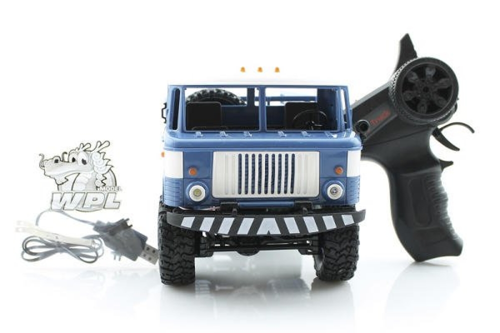Радиоуправляемый военный грузовик WPL 1:16 4WD – реалистичная модель на пульте с высокой детализацией и отличными ходовыми характеристиками. Машинка оснащена мощным коллекторным двигателем и полным приводом, обеспечивающими грузовику высокую проходимость в условиях бездорожья. Благодаря усиленному пластиковому шасси в кузов машинки можно загружать тяжелые вещи. WPL ГАЗ 66 не испугается даже крутых склонов при загруженном кузове. Для езды при плохом освещении в машинке установлены яркие светодиодные фары. Полного заряда аккумулятора 700 мАч хватит на 25-30 минут запуска машинки на дистанции до 40 м. Управление осуществляется при помощи идущего в комплекте пульта 2.4GHz.