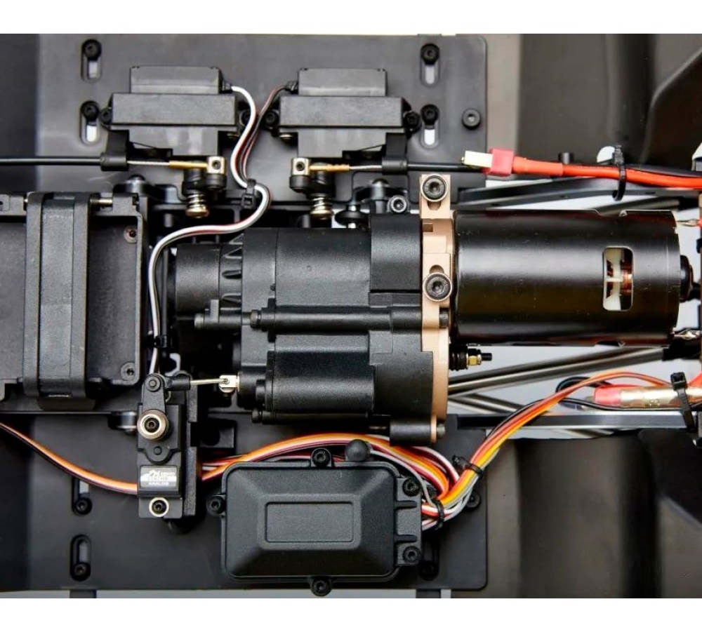Благодаря новому компактному корпусу, получилось сдвинуть трансмиссию вперёд на 32мм и опустить на 13,5мм, теперь она находится внутри рамы. Из-за смешения трансмиссии получилось сместить крепление аккумулятора в центр модели на 70,5мм. Новая компоновка обеспечила более правильную развесовку и низкий центр тяжести, что непременно отразилось на управлении. Модель стала более устойчивой, стало проще преодолевать подъёмы и спуски. Обновлённая трансмиссия имеет улучшенную мотораму, из-за чего увеличилось количество подходящих ведущих шестерней. Теперь можно устанавливать пиньоны с 11Т до 18Т.
