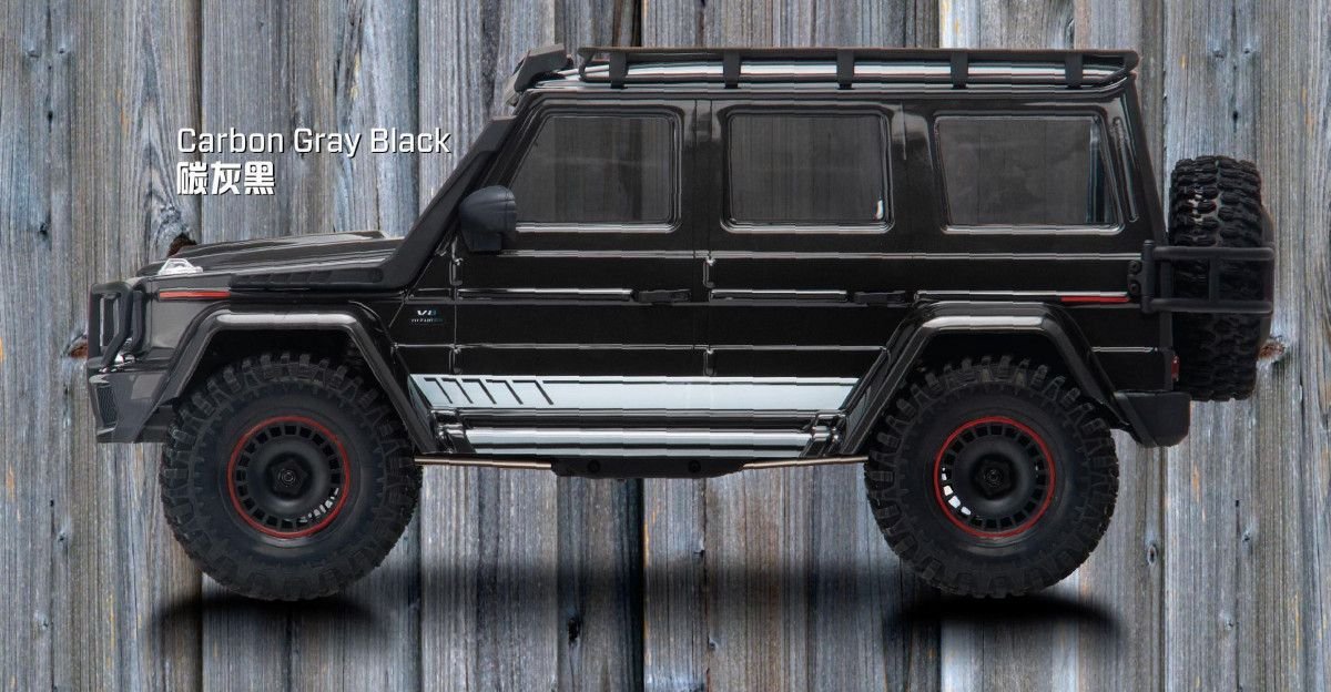 Модель оснащена реалистичным кузовом из поликарбоната Benz G500 с пластиковыми элементами декора, такими как зеркала, шноркель, багажник на крышу и креплением функционального запасного колеса. По желанию можно обрезать бампер на кузове как указанно в мануале и установить пластиковый силовой. Модель оснащена светоблоком к которому подключены диоды установленные спереди в фары и багажник а сзади в фонари на кузове и бампер, всем светом установленным на модель можно управлять с пульта. Кузов G500 имеет меленькие свесы, что сильно ценится на бездорожье.