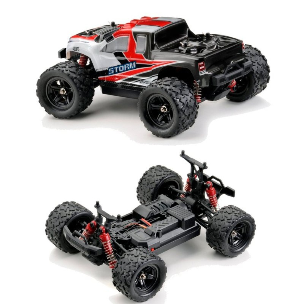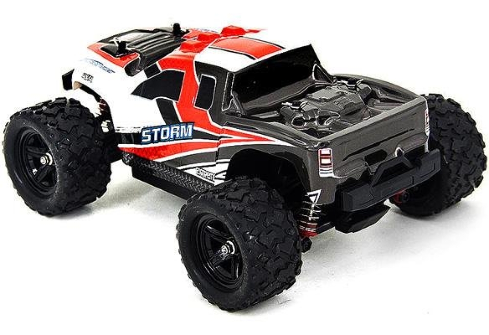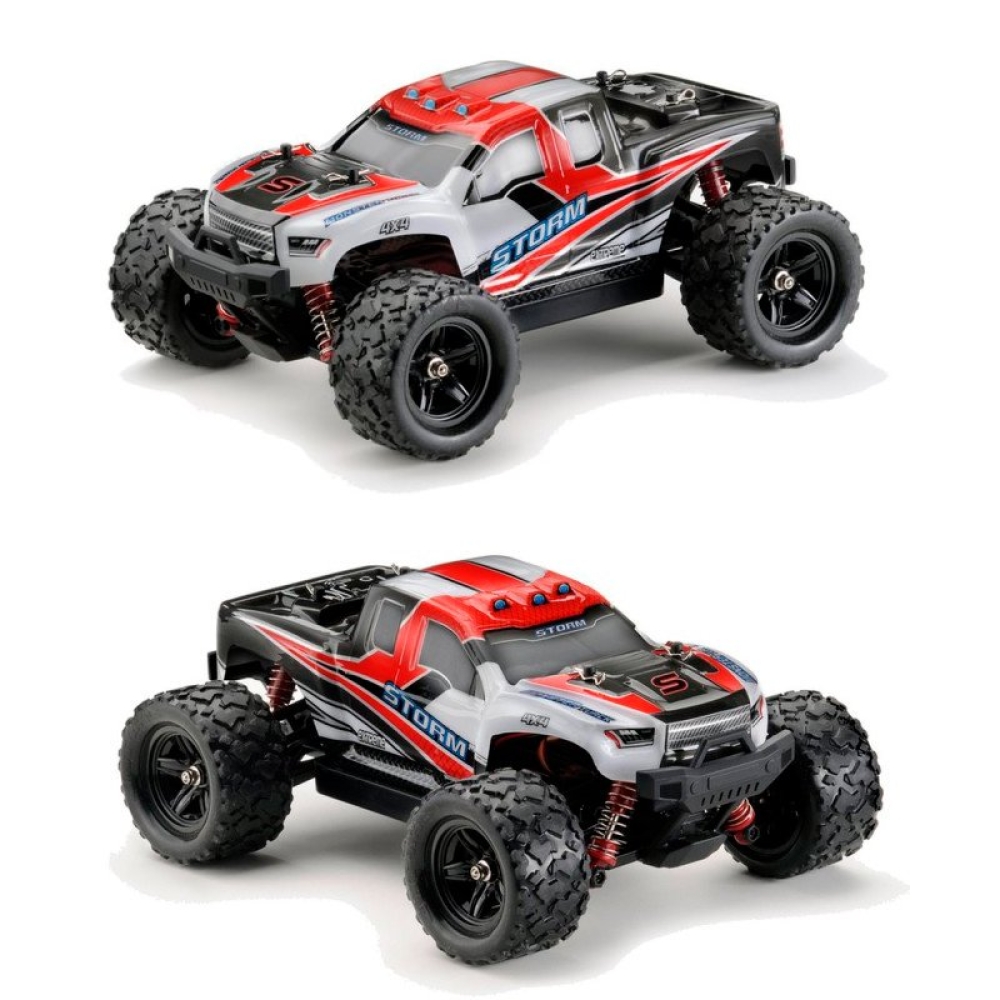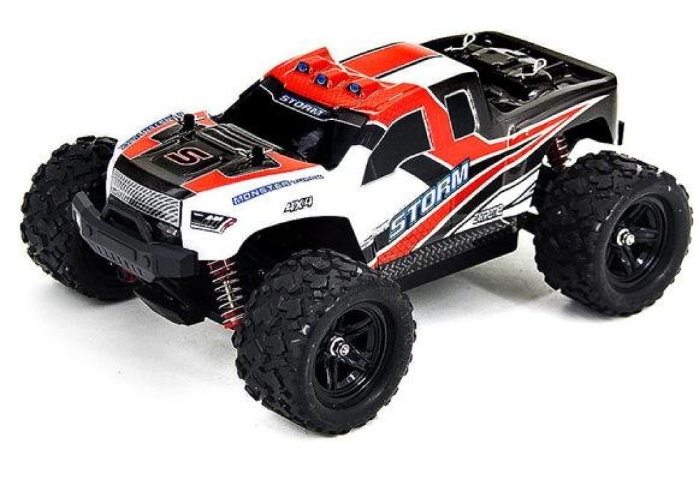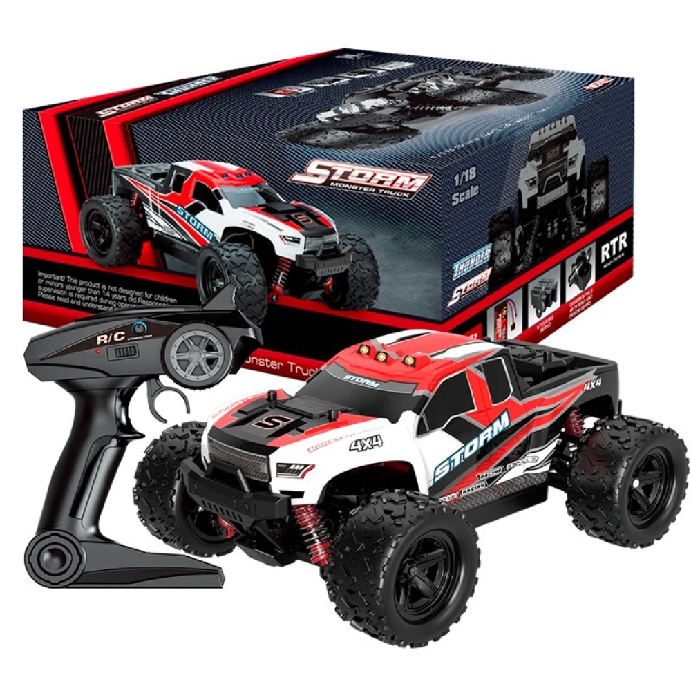 Радиоуправляемый внедорожник Zegan Thunder Storm 4WD HS18301 – это необычная и легкая полноприводная модель масштаба 1:18, способная разогнаться до скорости 36 км/ч. Управление - пропорциональное. В модель установлен коллекторный двигатель RC380 и литий-ионный аккумулятор. От ударов машинку и электронные компоненты защищают надежный прочный корпус и независимая пружинная подвеска, также обеспечивающая машинке улучшенное сцепление с дорогой. Пульт управления и передатчик работают на частоте 2,4 ГГц, что исключает пересечение частот с пультами других моделей. Корпус машинки ярко-красного цвета с черными и белыми вставками.
