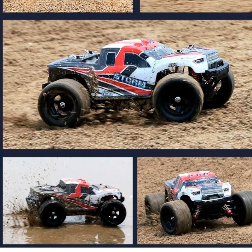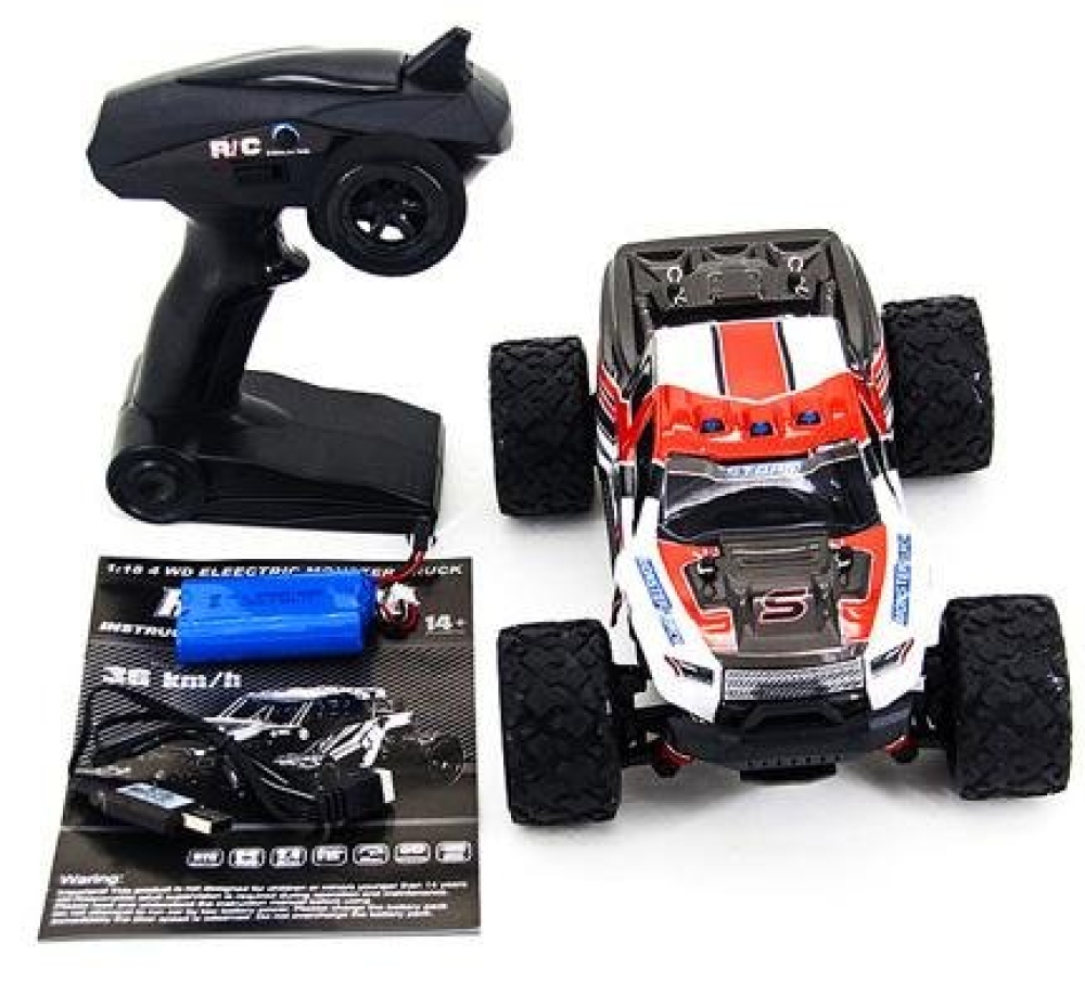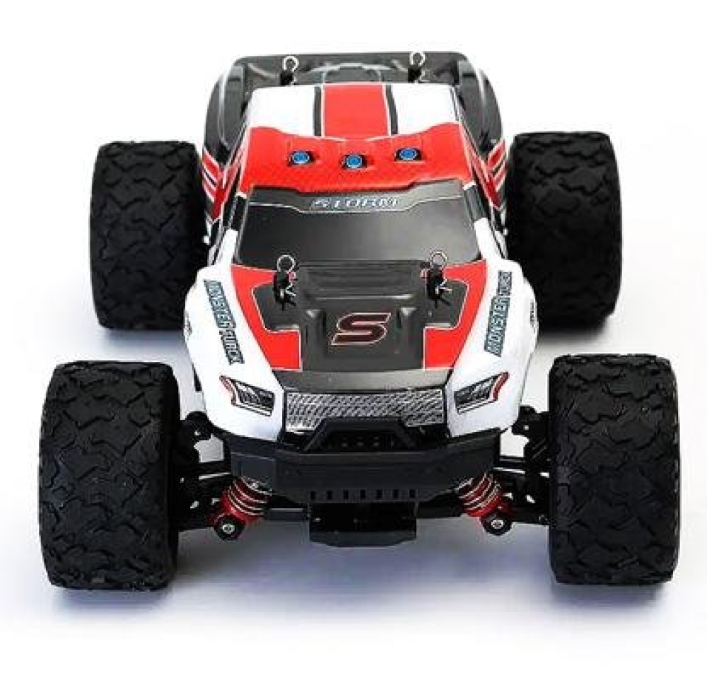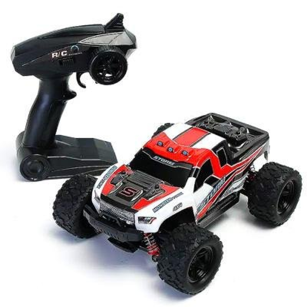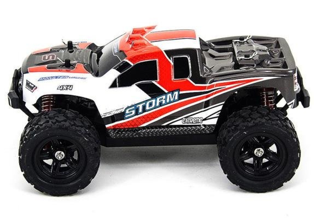 Радиоуправляемый внедорожник Zegan Thunder Storm 4WD HS18301 – это необычная и легкая полноприводная модель масштаба 1:18, способная разогнаться до скорости 36 км/ч. Управление - пропорциональное. В модель установлен коллекторный двигатель RC380 и литий-ионный аккумулятор. От ударов машинку и электронные компоненты защищают надежный прочный корпус и независимая пружинная подвеска, также обеспечивающая машинке улучшенное сцепление с дорогой. Пульт управления и передатчик работают на частоте 2,4 ГГц, что исключает пересечение частот с пультами других моделей. Корпус машинки ярко-красного цвета с черными и белыми вставками.
