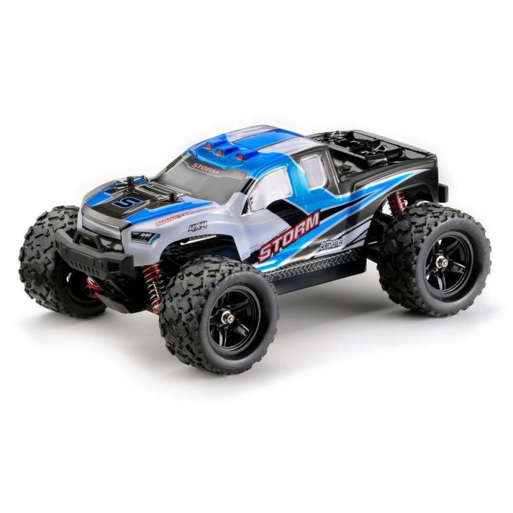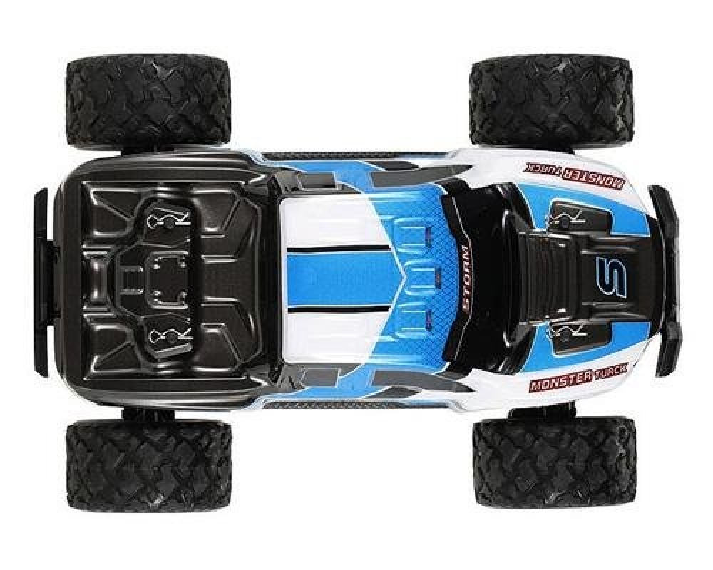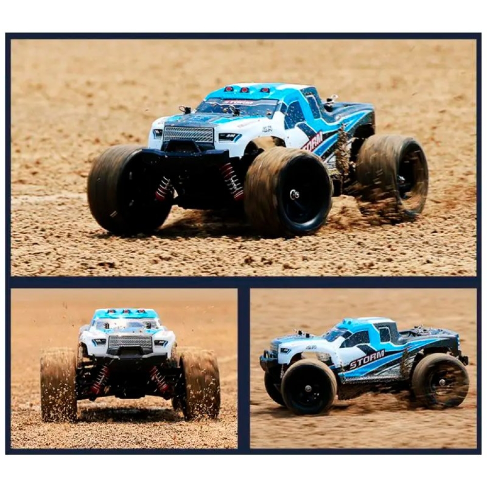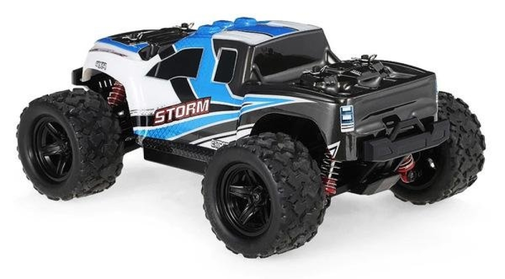 Радиоуправляемый внедорожник Zegan Thunder Storm 4WD HS18302 – это необычная и легкая полноприводная модель масштаба 1:18, способная разогнаться до скорости 36 км/ч. Управление - пропорциональное. В модель установлен коллекторный двигатель RC380 и литий-ионный аккумулятор. От ударов машинку и электронные компоненты защищают надежный прочный корпус и независимая пружинная подвеска, также обеспечивающая машинке улучшенное сцепление с дорогой. Пульт управления и передатчик работают на частоте 2,4 ГГц, что исключает пересечение частот с пультами других моделей. Корпус машинки голубого цвета с черными и белыми вставками.