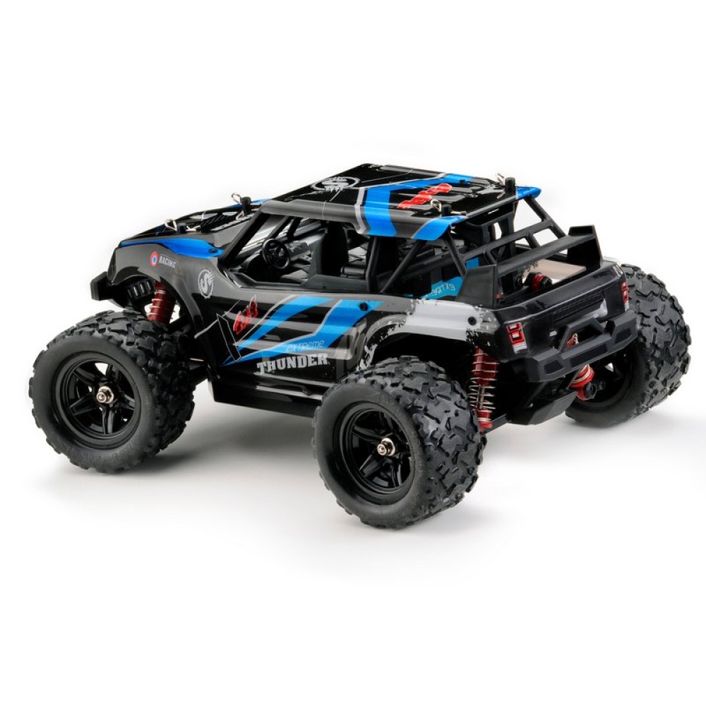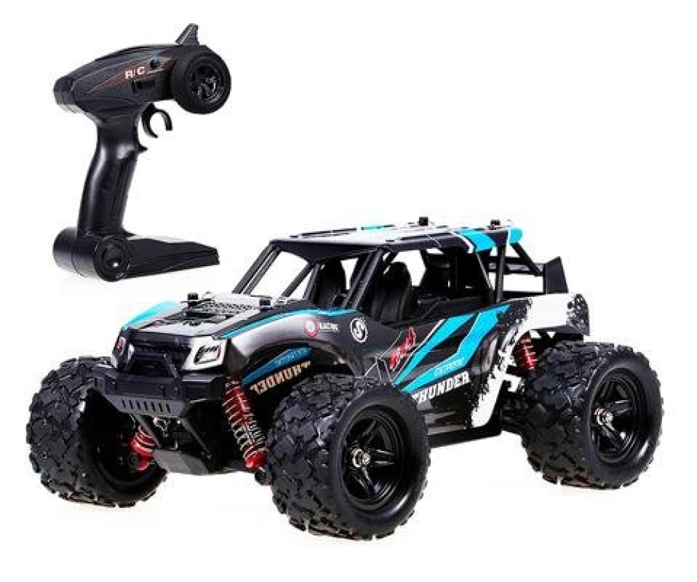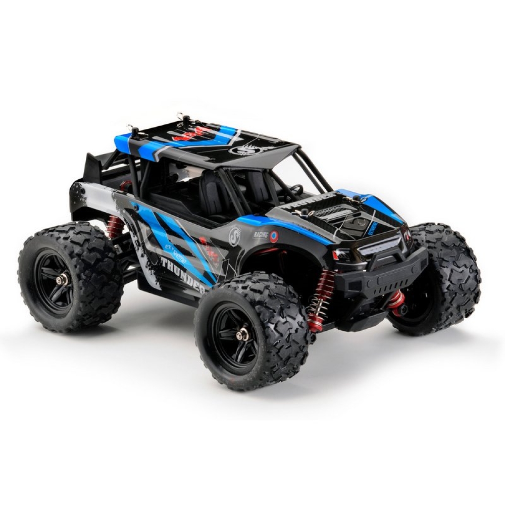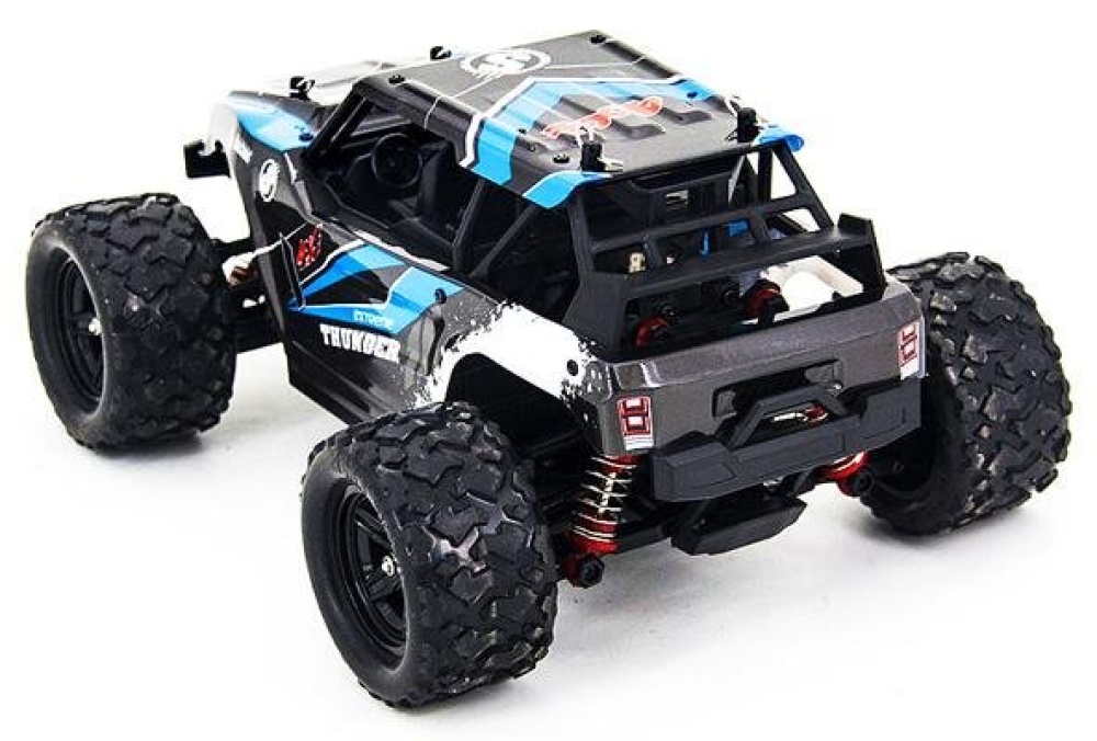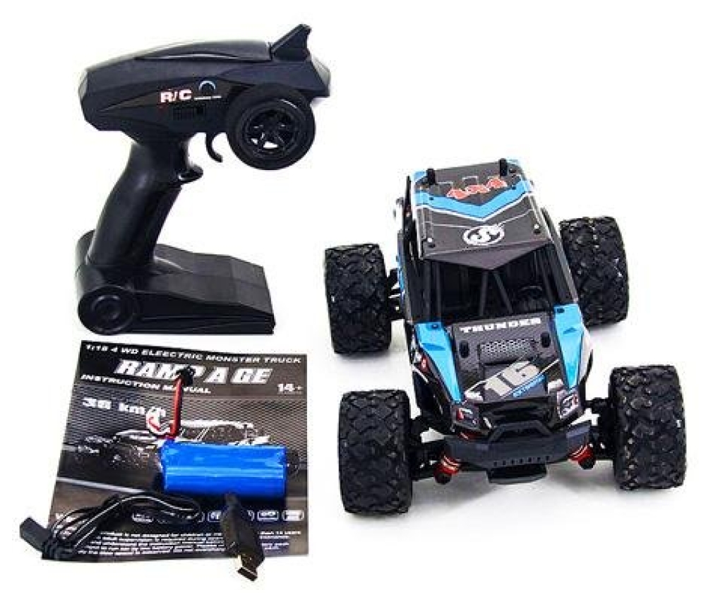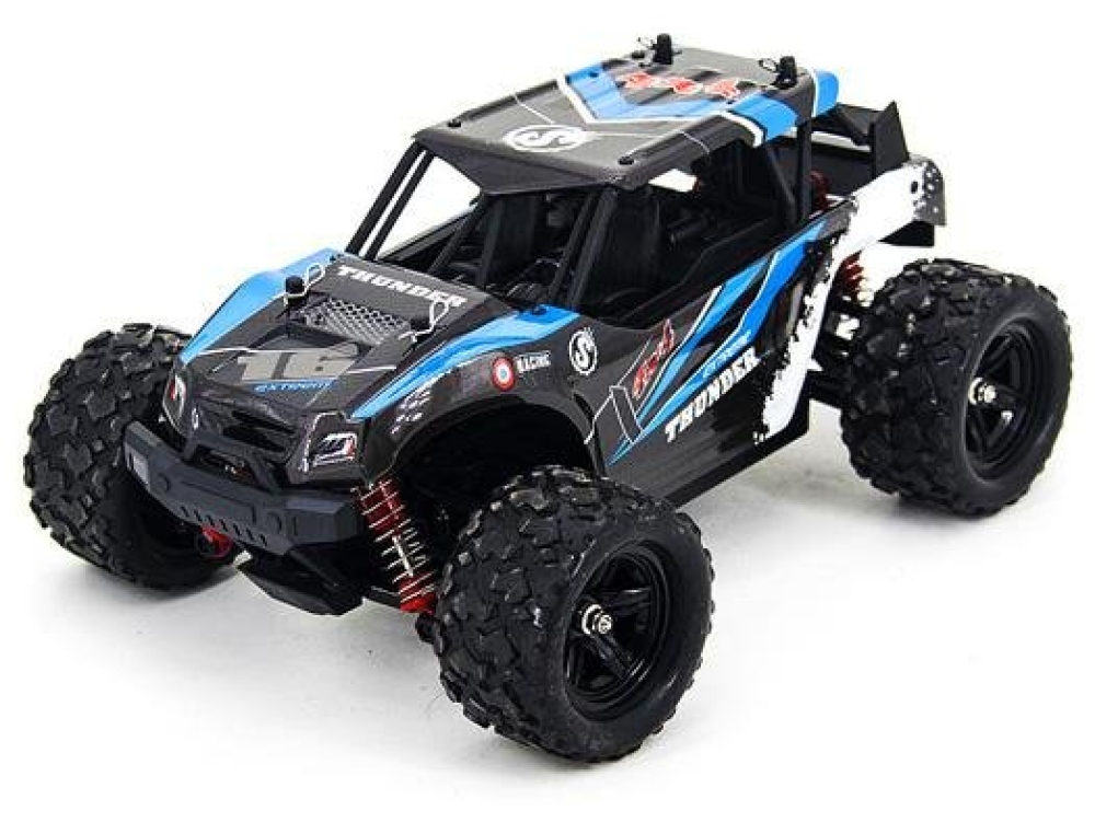 Радиоуправляемый внедорожник Zegan Thunder Storm 4WD HS18312 – это необычная и легкая полноприводная модель масштаба 1:18, способная разогнаться до скорости 36 км/ч. Управление - пропорциональное. В модель установлен коллекторный двигатель RC380 и литий-ионный аккумулятор. От ударов машинку и электронные компоненты защищают надежный прочный корпус и независимая пружинная подвеска, также обеспечивающая машинке улучшенное сцепление с дорогой. Пульт управления и передатчик работают на частоте 2,4 ГГц, что исключает пересечение частот с пультами других моделей. Корпус машинки сине-чёрного цвета.