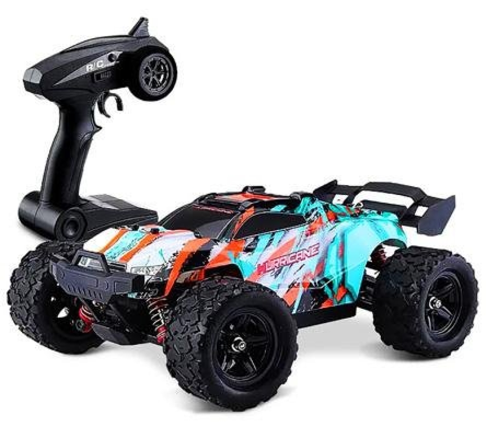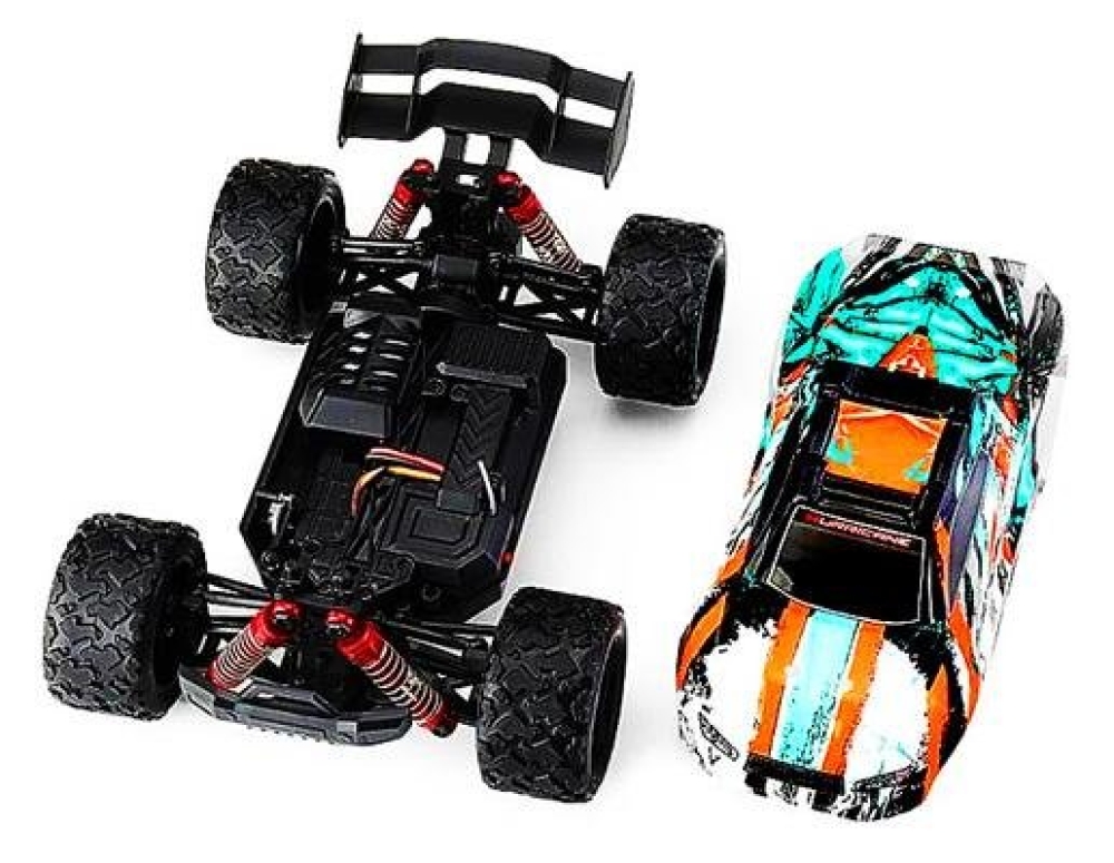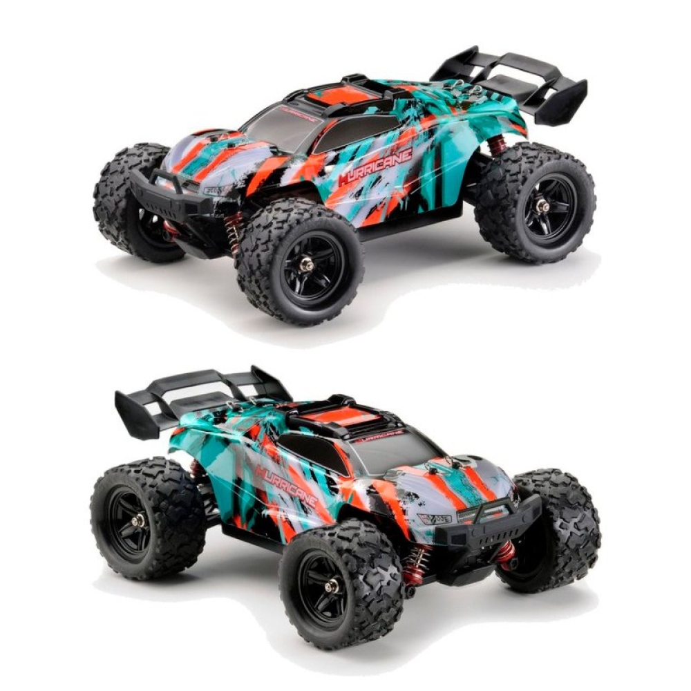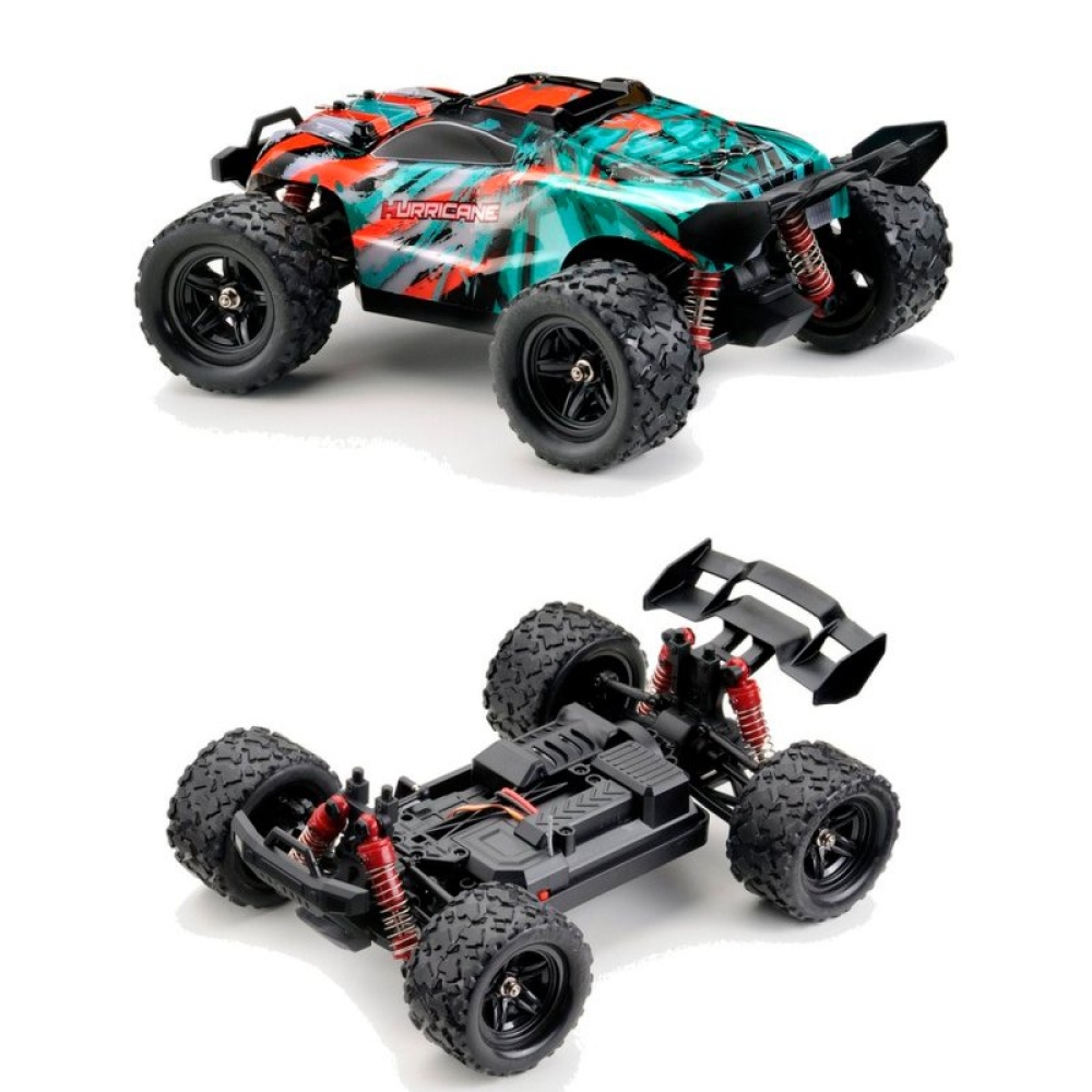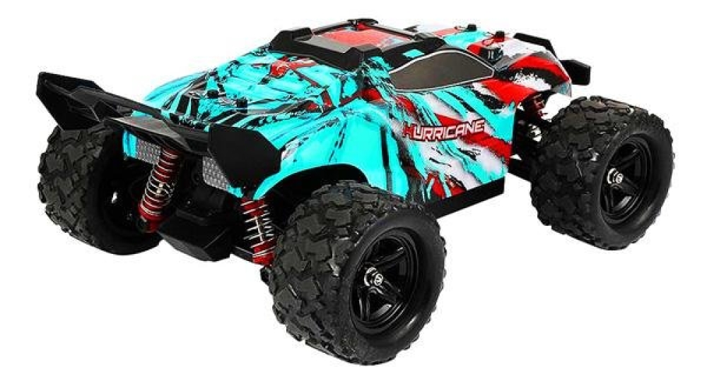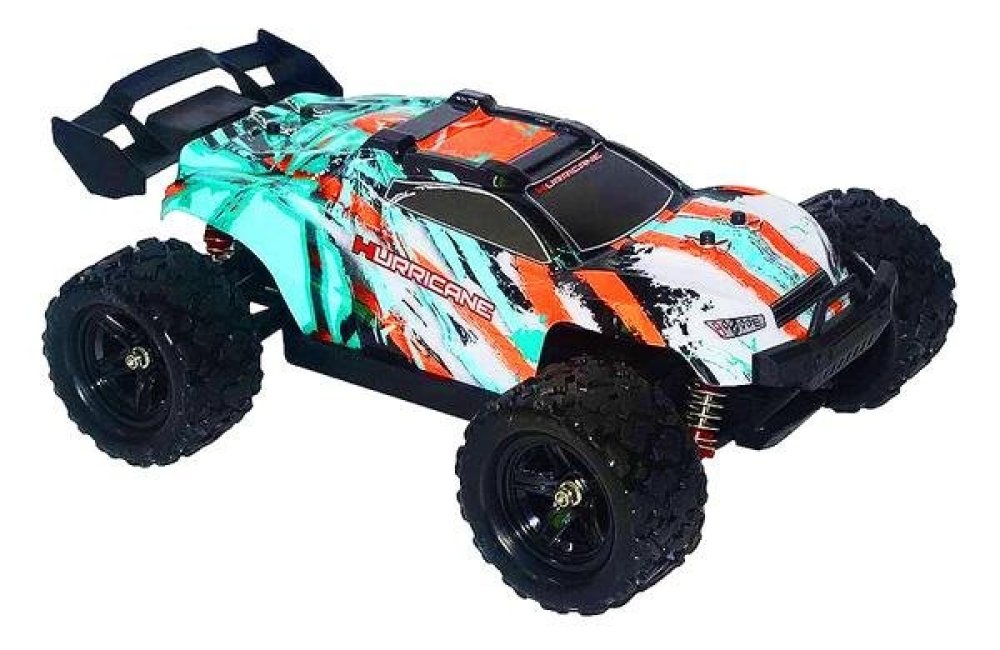 Радиоуправляемый внедорожник Zegan Thunder Storm 4WD HS18322 – это необычная и легкая полноприводная модель масштаба 1:18, способная разогнаться до скорости 36 км/ч. Управление - пропорциональное. В модель установлен коллекторный двигатель RC380 и литий-ионный аккумулятор. От ударов машинку и электронные компоненты защищают надежный прочный корпус и независимая пружинная подвеска, также обеспечивающая машинке улучшенное сцепление с дорогой. Пульт управления и передатчик работают на частоте 2,4 ГГц, что исключает пересечение частот с пультами других моделей. Корпус машинки ярко-бирюзового цвета с оранжевыми и белыми вставками.