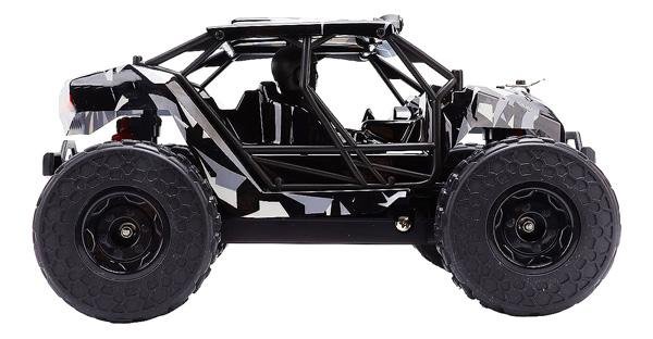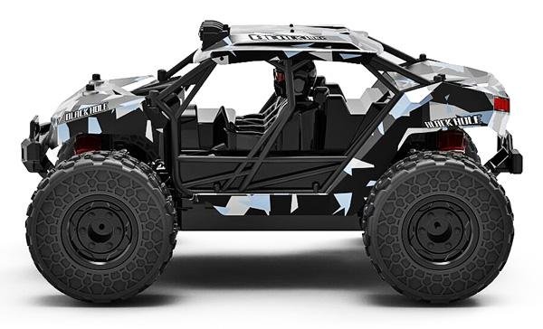 Внедорожник от Zegan в масштабе 1:18. Небольшой вес, полный привод, модель разгоняется до скорости 36 км/ч. Корпус машинки декорирован чёрно-серым геометрическим узором.