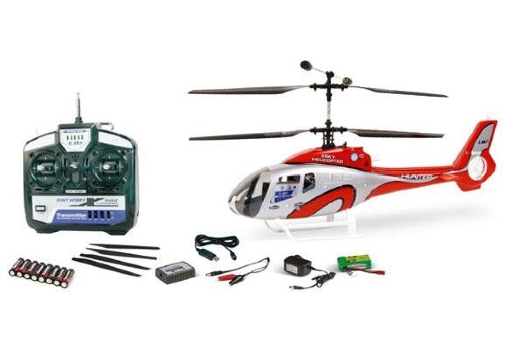 Комплект поставки: собранный вертолет, пульт управления, аккумулятор, зарядное устройство, комплект проводов для подключения к автомобильному аккумулятору 12В, 8 батареек AA, инструкция по эксплуатации