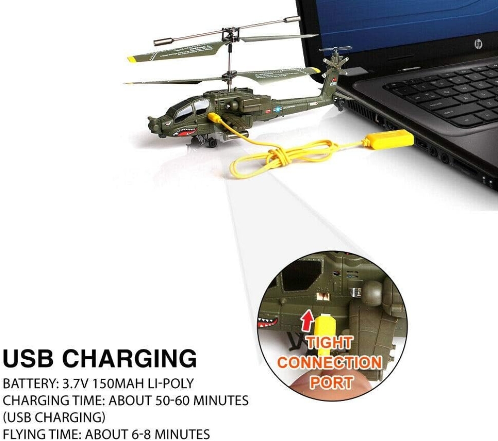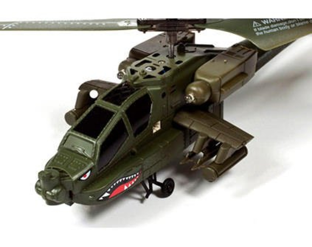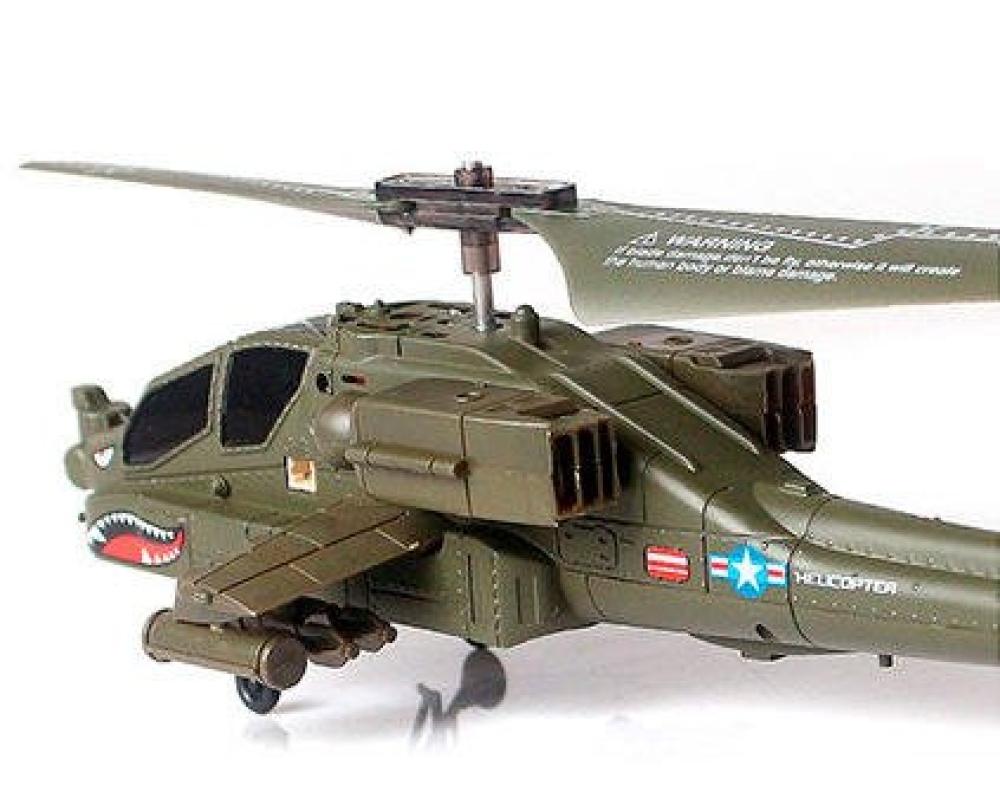 Радиоуправляемая модель вертолета с гироскопом для начинающих. Одним из основных преимуществ - высокая стабильность полета и минимальные вес. Имеет соосную систему винтов, представляет из себя детализированную копия штурмового вертолета НАТО Apache AH-64