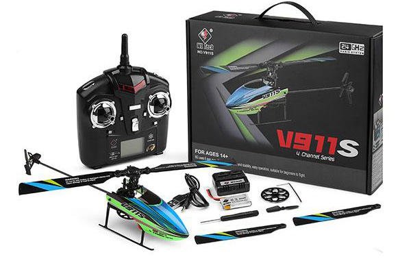 V911S оснащен гироскопом, имеет 4-канальную аппаратуру управления, работающую на частоте 2,4 ГГц. Модель маневренная и послушная, поэтому подходит для начинающих.