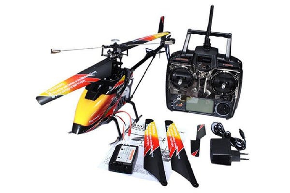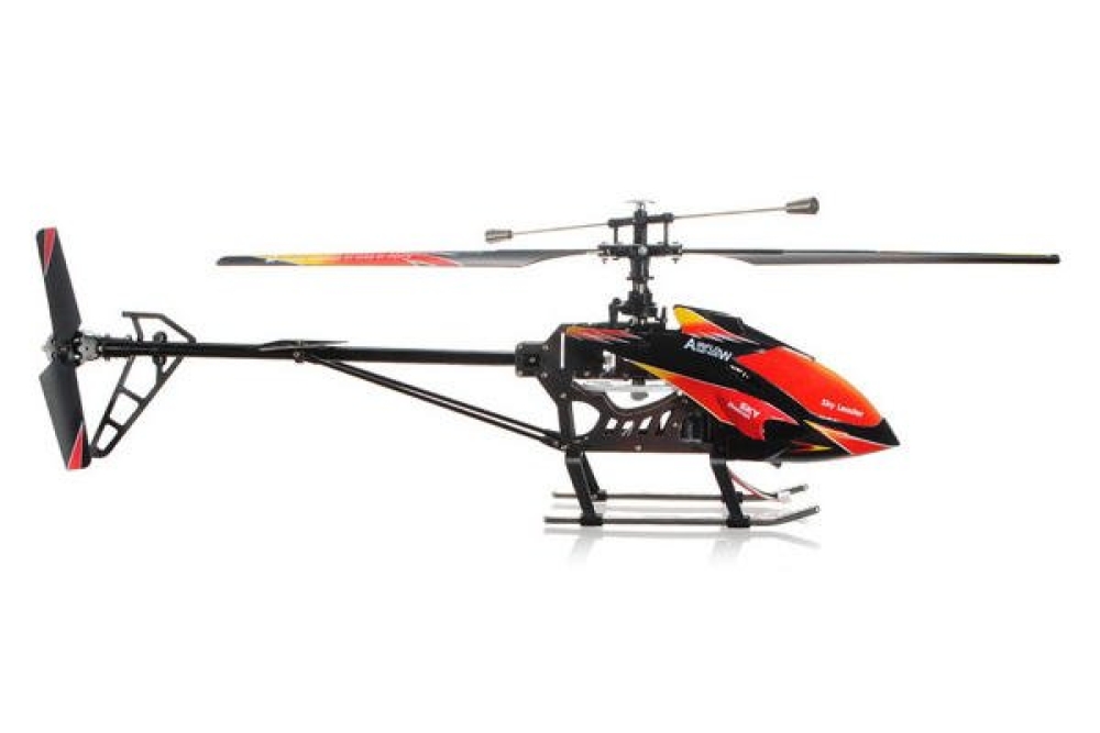 Самый популярный вертолет на радиоуправлении WLtoys V913 позволит вам освоить азы пилотирования. Модель имеет простое и понятное для новичков управление за счет классической схемы винтов, что делает ее невероятно маневренной и управляемой даже в ветреную погоду. Наклоном винтов управляет специальный сервомеханизм, а также для простоты полета установлен так называемый флайбар. За надежную связь и управление отвечает 4-х канальная аппаратура с частотой 2.4Ghz с дальностью полета более 150 метров. Аккумулятор Li-Po 7.4v 1500 mAh обеспечит более 12 минут полета. Время зарядки составит не более 120 минут. Длина вертолета составляет 70см, а дизайн вертолета выполнен в стиле вертолета v911. Рама выполнена из металла, а корпус из гибкого пластика, позволяющего принимать на себя удары при падениях. У WLtoys V913 яркий красивый дизайн, а в комплект входит все необходимое для полетов, это RTF версия. Установленный коллекторный электродвигатель очень мощный и долговечный.