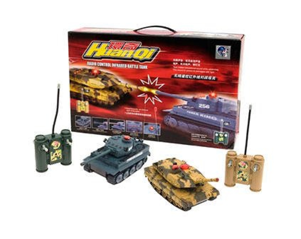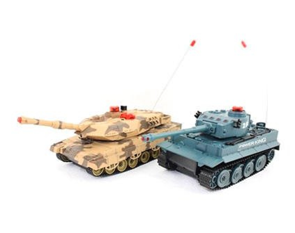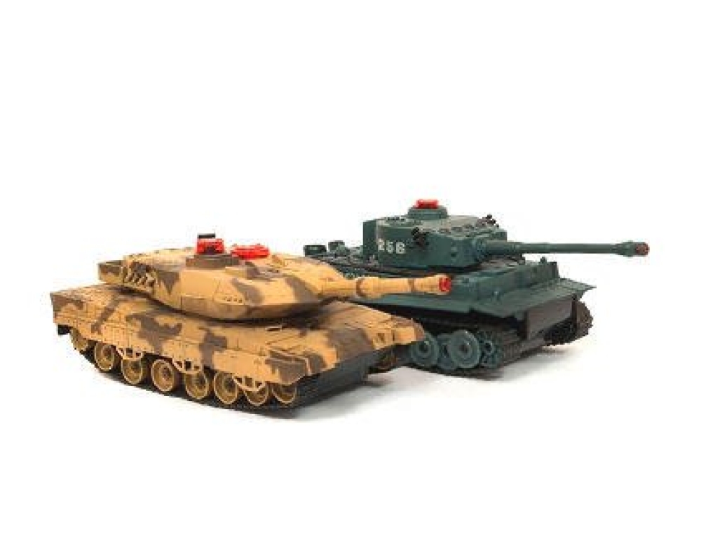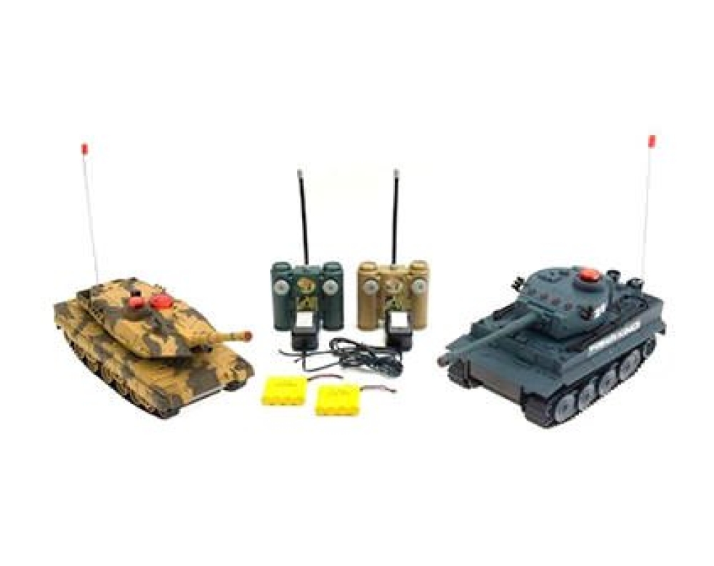Набор из 2-х радиоуправляемых танков – проработанных детализированных моделей Leopard и Tiger в масштабе 1:32 для полноценного увлекательного танкового боя. Модели оснащены инфракрасными пушками с дальностью выстрела до 3 м и углом захвата 10°. Четыре светодиода на башне сигнализируют о попадании – после четвертого попаданий машина отключается. Модели воспроизводят реалистичные звуки работы мотора и выстрелов. Обладают хорошей проходимостью, могут перемещаться не только по квартире среди препятствий, но и на открытом воздухе по пересеченной местности. Пульт радиоуправления действует на расстоянии до 10 м, что позволяет устраивать захватывающие масштабные танковые баталии. В комплект входят 2 модели на радиоуправлении, 2 пульта ДУ, 2 аккумулятора, 2 зарядных устройства.