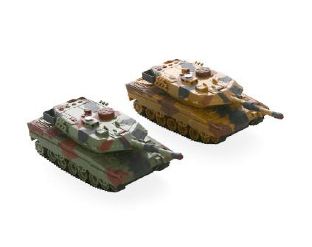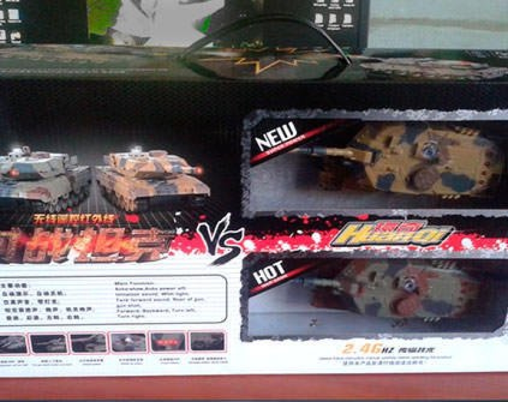 Набор для танкового боя Huan Qi 552 включает 2 радиоуправляемых модели в масштабе 1:32. Дальность действия пульта управления достигает 20 м, что позволяет устроить настоящее масштабное танковое сражение. Маневренные модели двигаются вперед и назад, поворачивают в стороны и разворачиваются на месте. Башня может поворачиваться на 300°. Оснащены инфракрасными пушками и четыремя светодиодными индикаторами повреждений – после четвертого попадания машина автоматически отключается. Пушки бьют на расстоянии до 3 м. Большую реалистичность баталии добавляют звуковые эффекты – издаваемые моделями звуки выстрелов и работы двигателей. В комплект входят 2 радиоуправляемых модели, 2 пульта ДУ, 2 аккумулятора, 2 зарядных устройства.