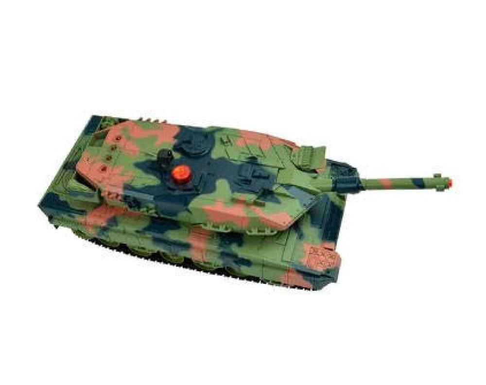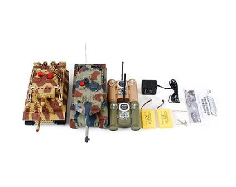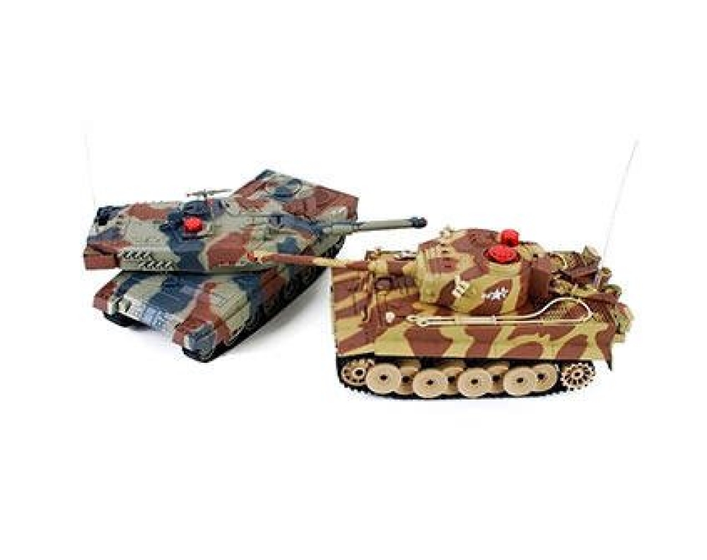 Обновленный набор для захватывающего танкового боя включает 2 детализированные радиоуправляемые модели - «Tiger» и «Abrams» в масштабе 1:24. Маневренные модели укомплектованы инфракрасными пушками, бьющими на расстоянии до 3 м. На башне расположены по 4 светодиодных индикатора степени повреждения – после четвертого попадания машина автоматически выключается. Сражение сопровождается реалистичными звуковыми эффектами, воспроизводящими звуки выстрелов и работы двигателей. Управление моделями достаточно простое и не требует специальных навыков, его обеспечивают пульты ДУ, действующие в радиусе 10 м. В комплект входят 2 модели, 2 пульта радиоуправления, 2 аккумулятора, 2 зарядных устройства.