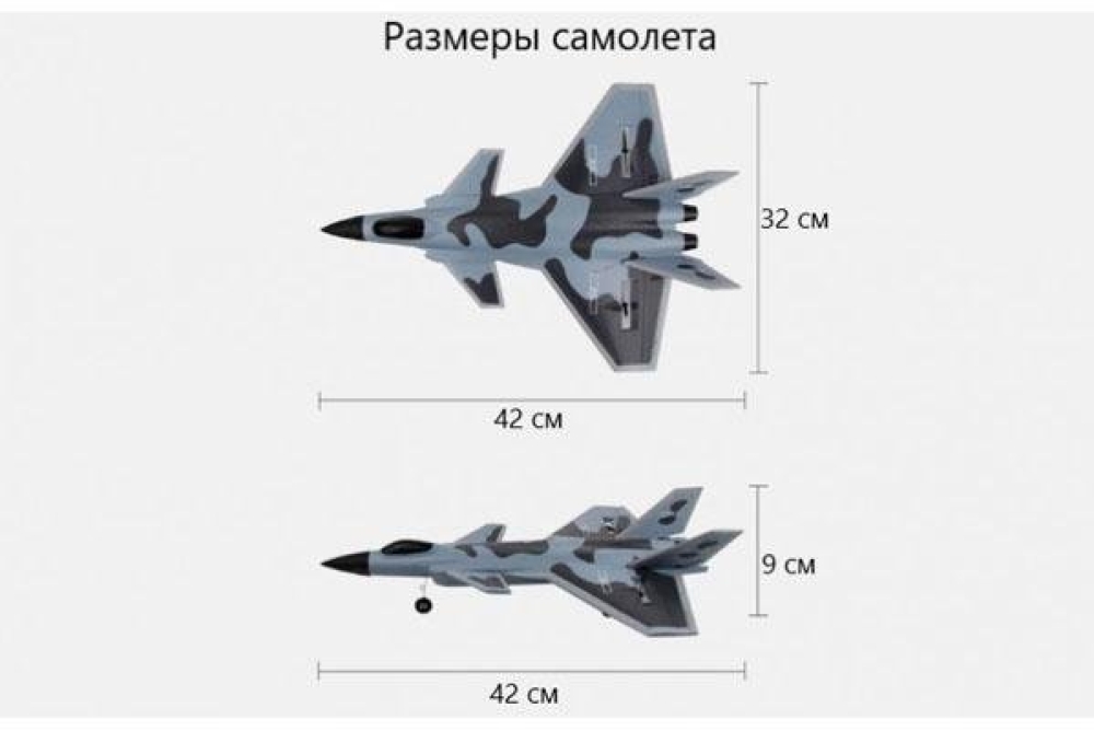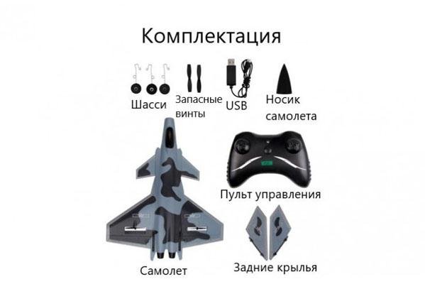Комплект поставки: комплект самолета с электроникой, пульт управления, аккумулятор, запасные аксессуары, инструкция по эксплуатации