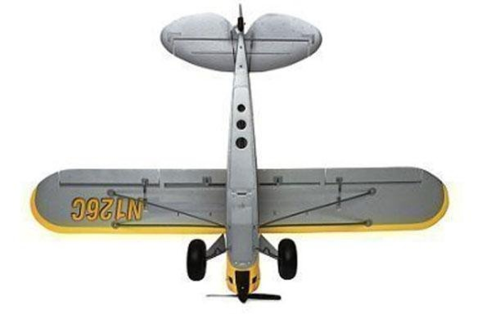 Точная копия учебно-тренировочного самолета. Оснащен технологией SAFE (Sensor Assisted Flight Envelope), которая упрощает управление, поэтому справится любой новичок. В профи режиме вы можете отключить стабилизацию и убрать ограничения тангажа и крена. Колеса широкие и надувные, поэтому можно производить взлет и посадку с любой ровной поверхности.