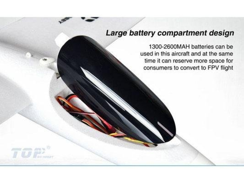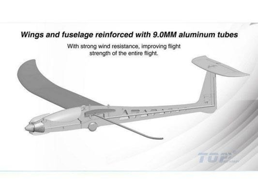 Один из самых больших планеров с размахом крыла 1.8 метра. Способен держаться в воздухе до 20 минут при восходящих потоках воздуха. Для хранения и транспортировки имеет разборное быстросъемное крыло. Модель отлично подойдет для новичков и пилотов среднего уровня. Для повышения прочности самолета вдоль всего фюзеляжа и крыльев установлены алюминиевые трубки. Для защиты пропеллера и мотора на данной модели предусмотрена складная конструкция винта, т.е. при экстренном приземлении или падении, даже при работающем моторе пропеллер не повредится. Расширенный батарейный отсек позволит использовать аккумуляторные батареи емкостью от 1300 до 2600 mah, а также возможно установить FPV оборудование для трансляции видео во время полета.